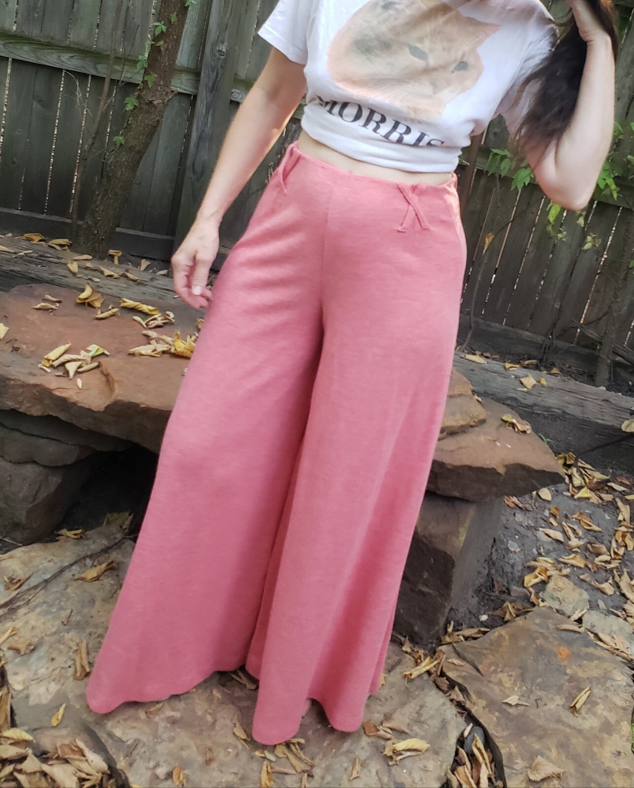 Vtg 60s 70s Palazzo Lounge Pants High Waist Super Wide Pink Small W24-25 L28