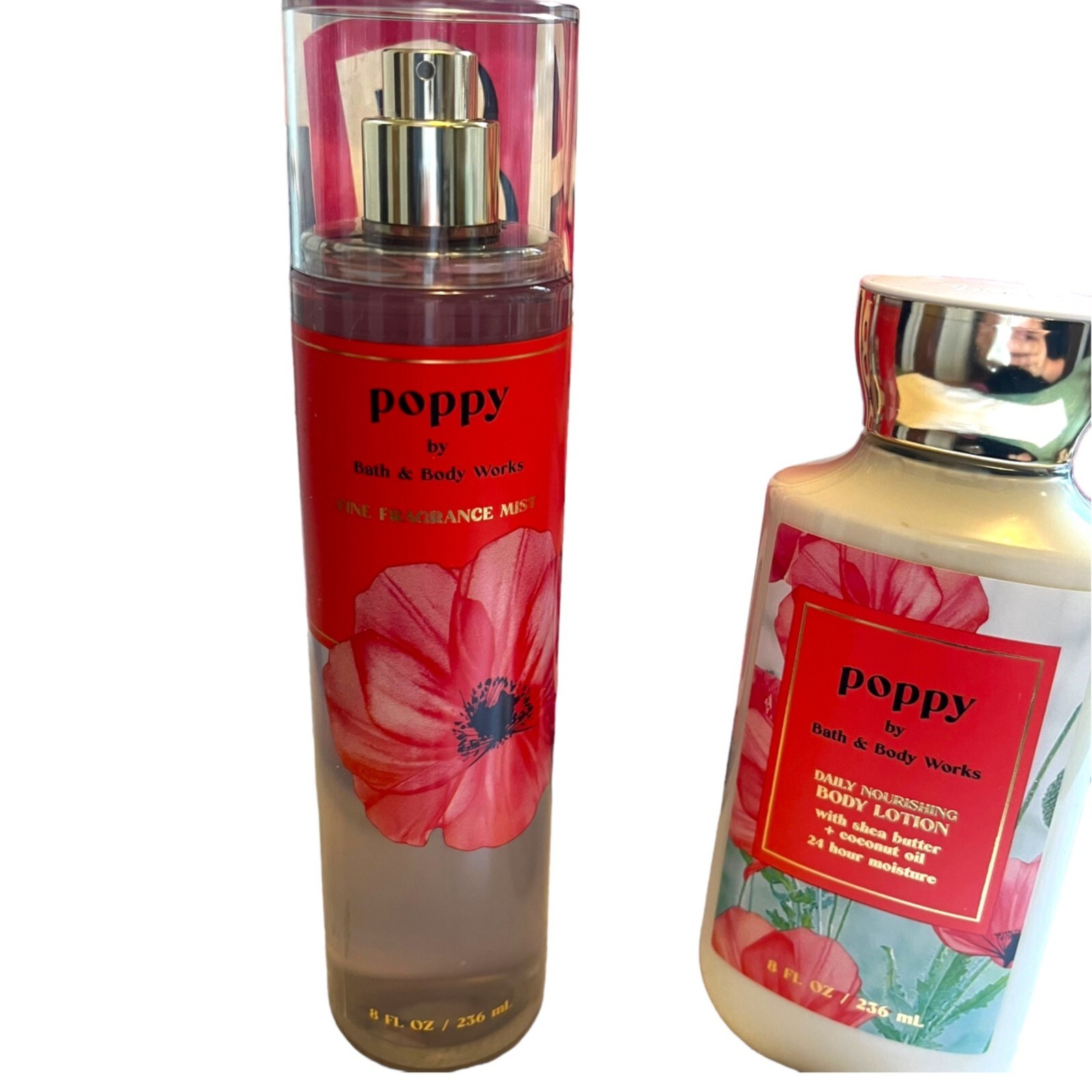 NWT Bath Body Works Poppy Fine Fragrance Mist 8oz Body Lotion 8oz Set