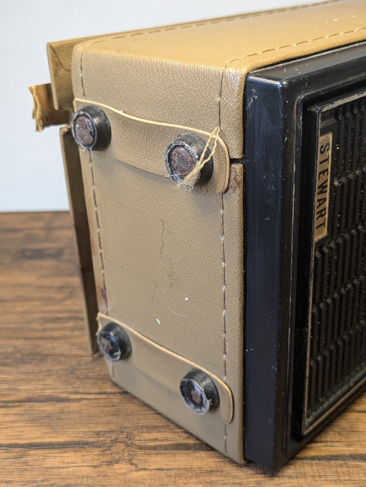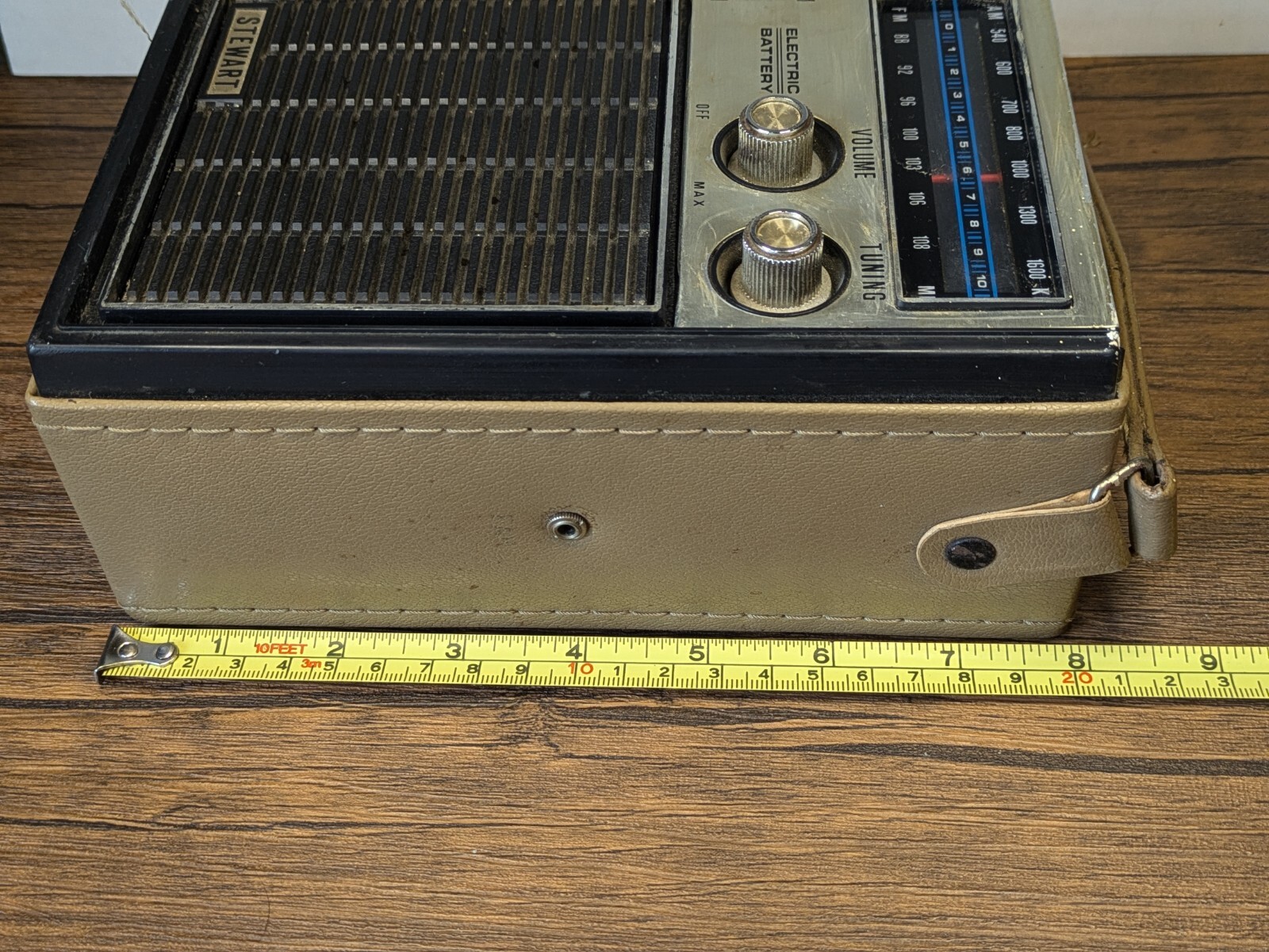 как выглядит Vintage - 8" Stewart AM/FM Radio Tan Case, Plug In/Battery Powered, Tested Works фото