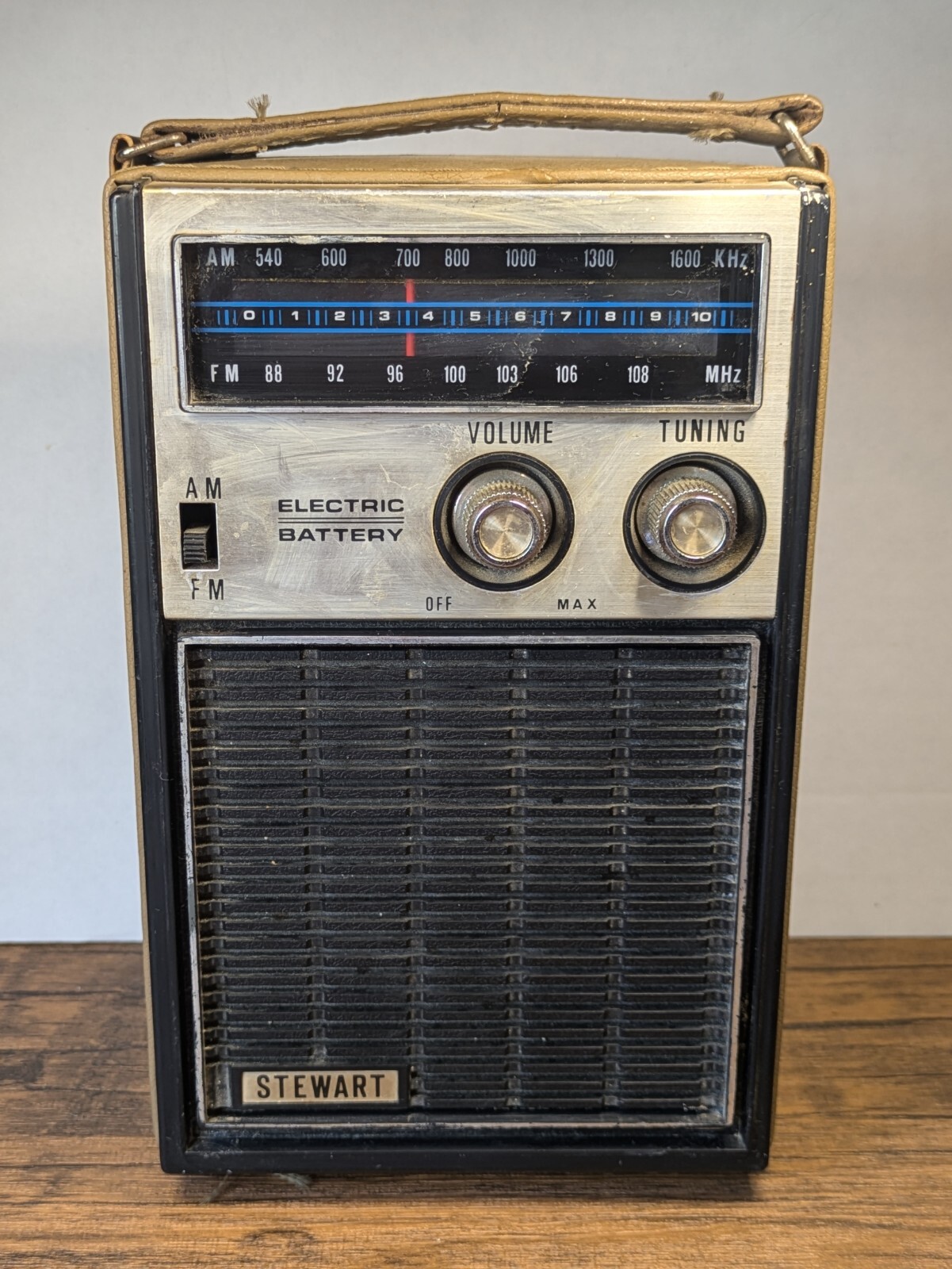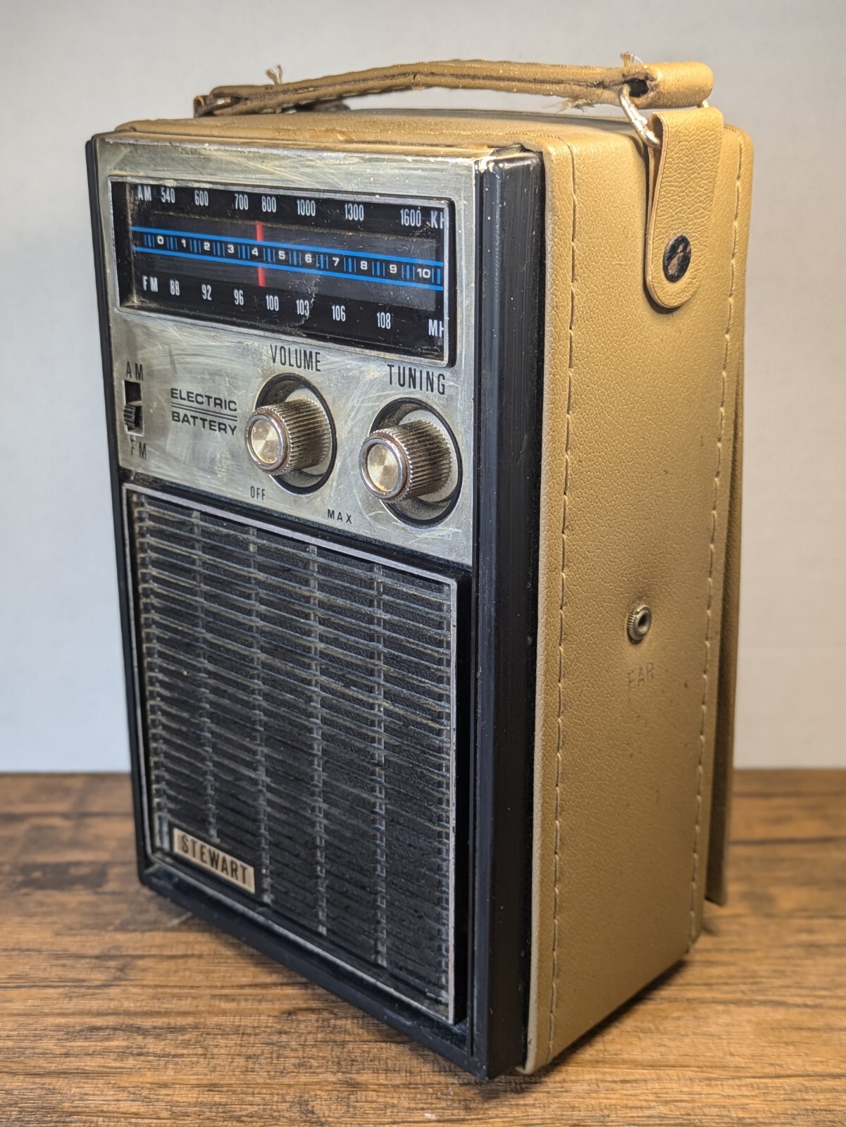 Vintage - 8 Stewart AM/FM Radio Tan Case, Plug In/Battery Powered, Tested Works