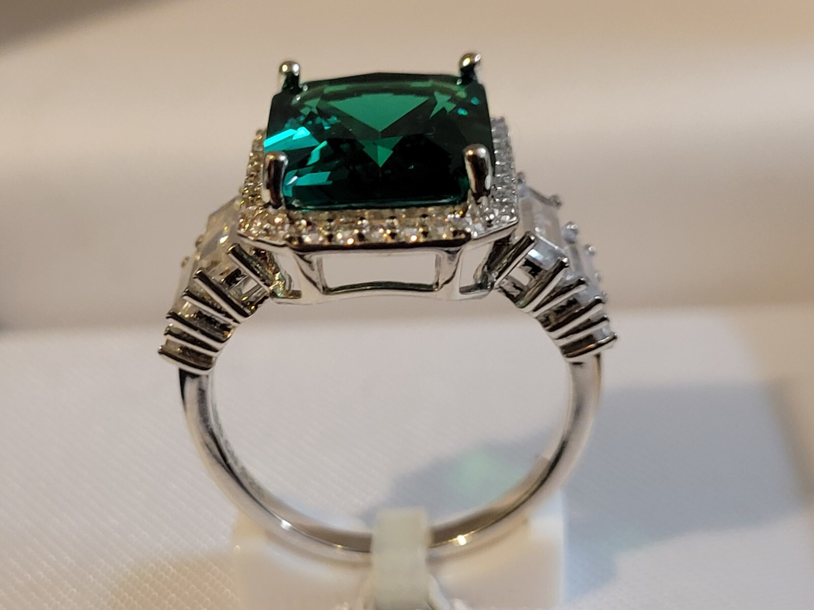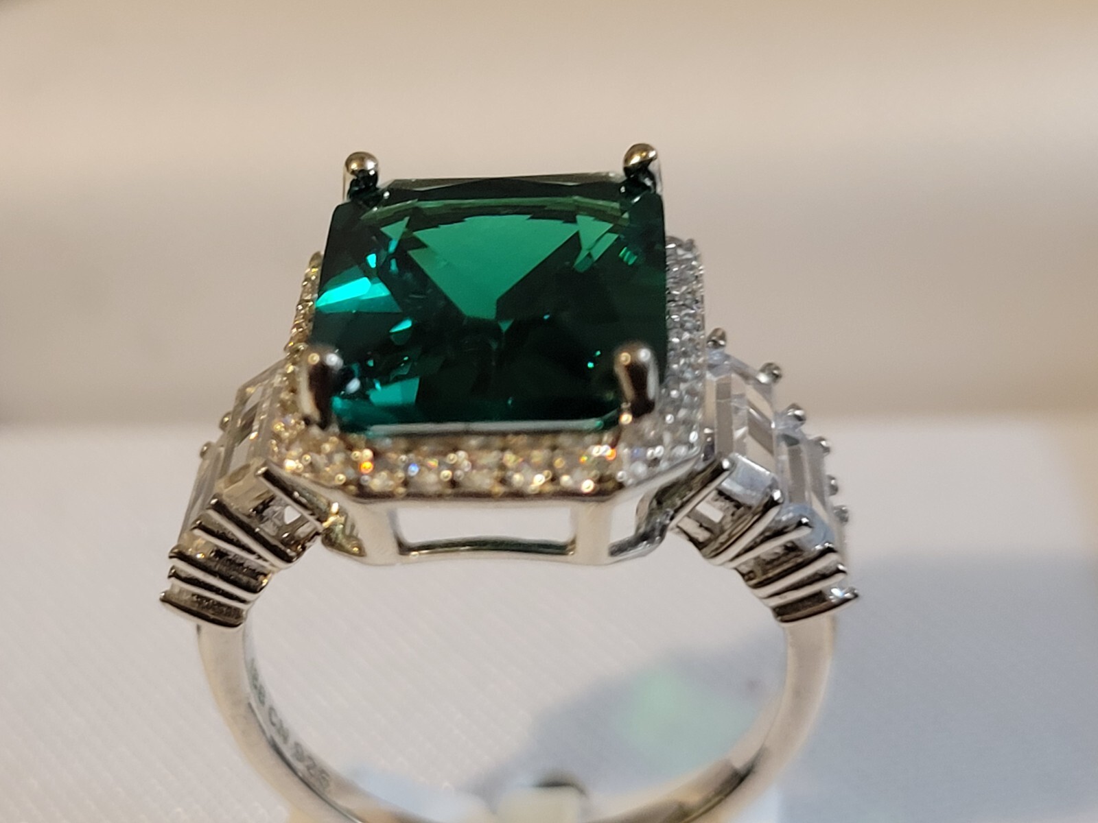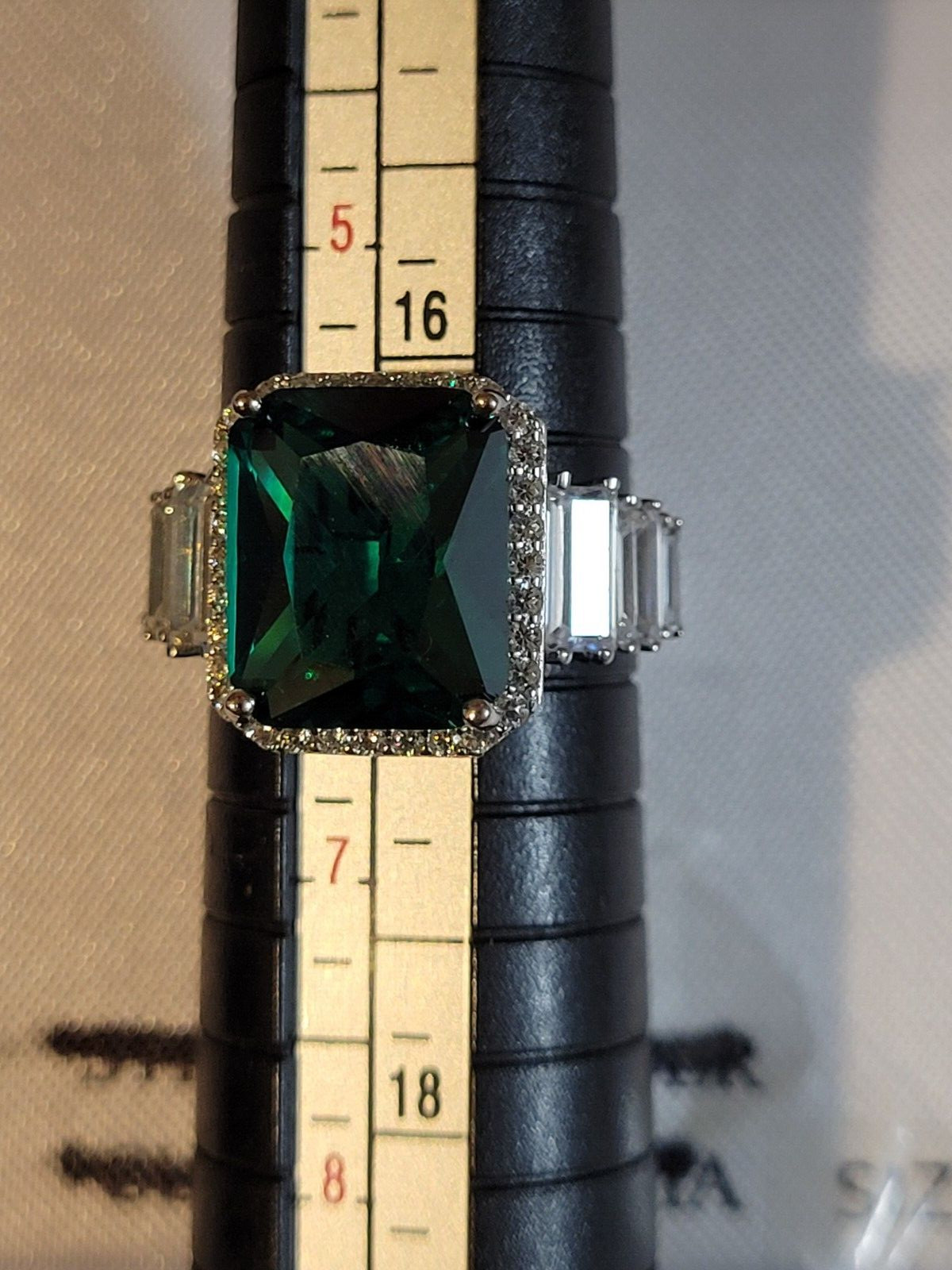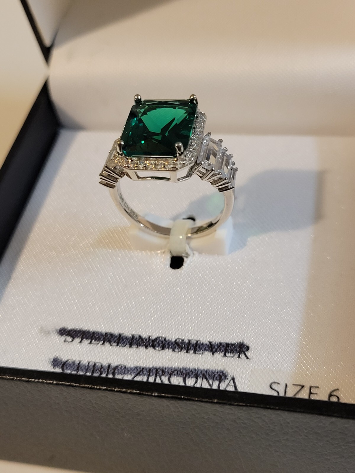 Sterling Silver and Lab Created Emerald Ring Size 6 box
