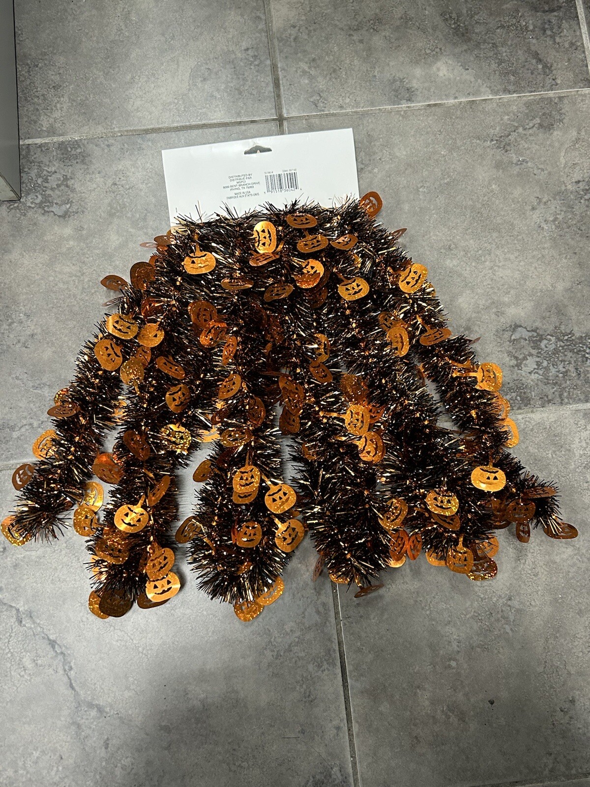 Halloween Black Orange Tinsel Garland with Orange Pumpkins, 12 Ft, BRAND NEW