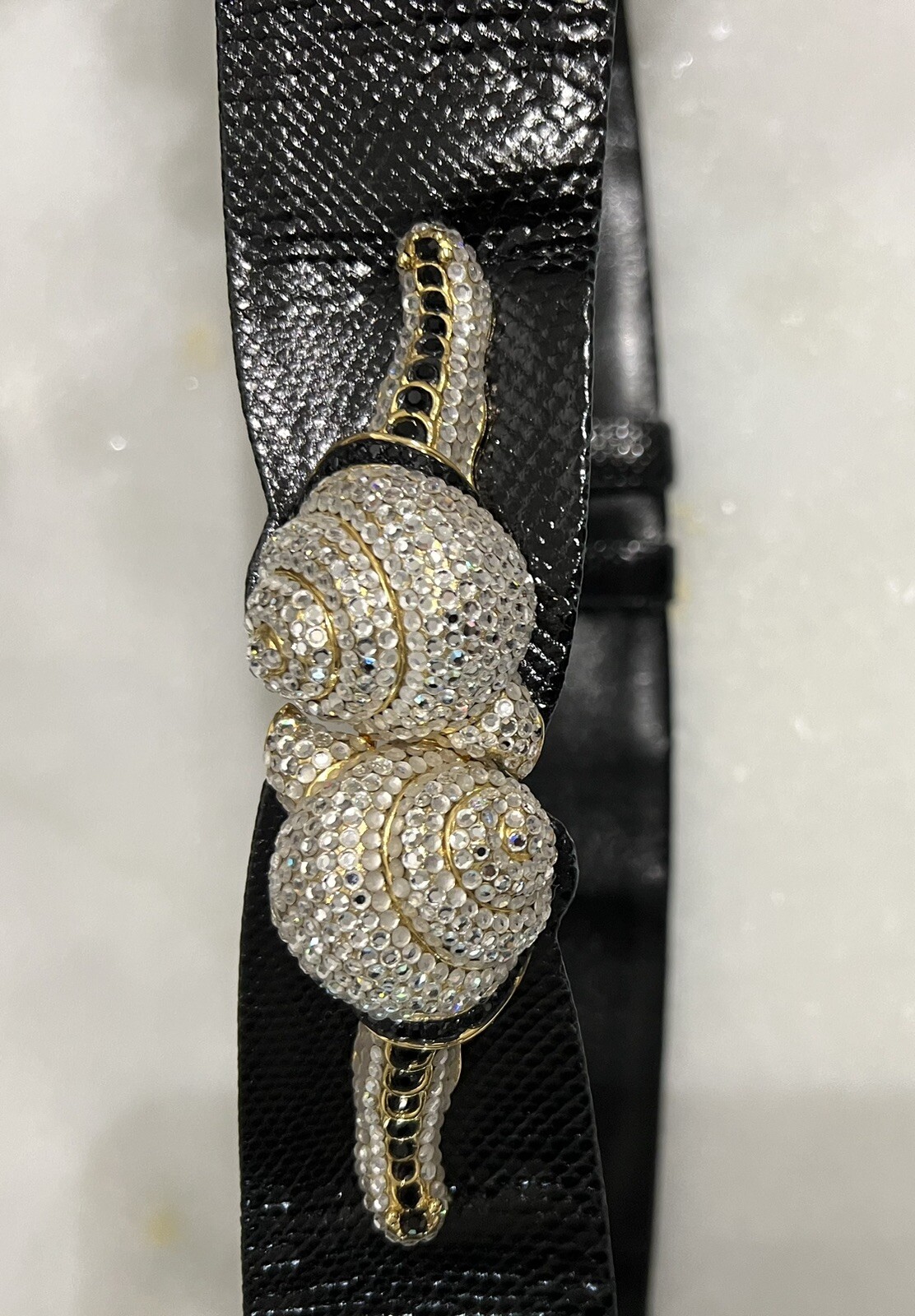 Judith Leiber Pave Crystal Bejeweled Snail Black Woman s Leather Belt