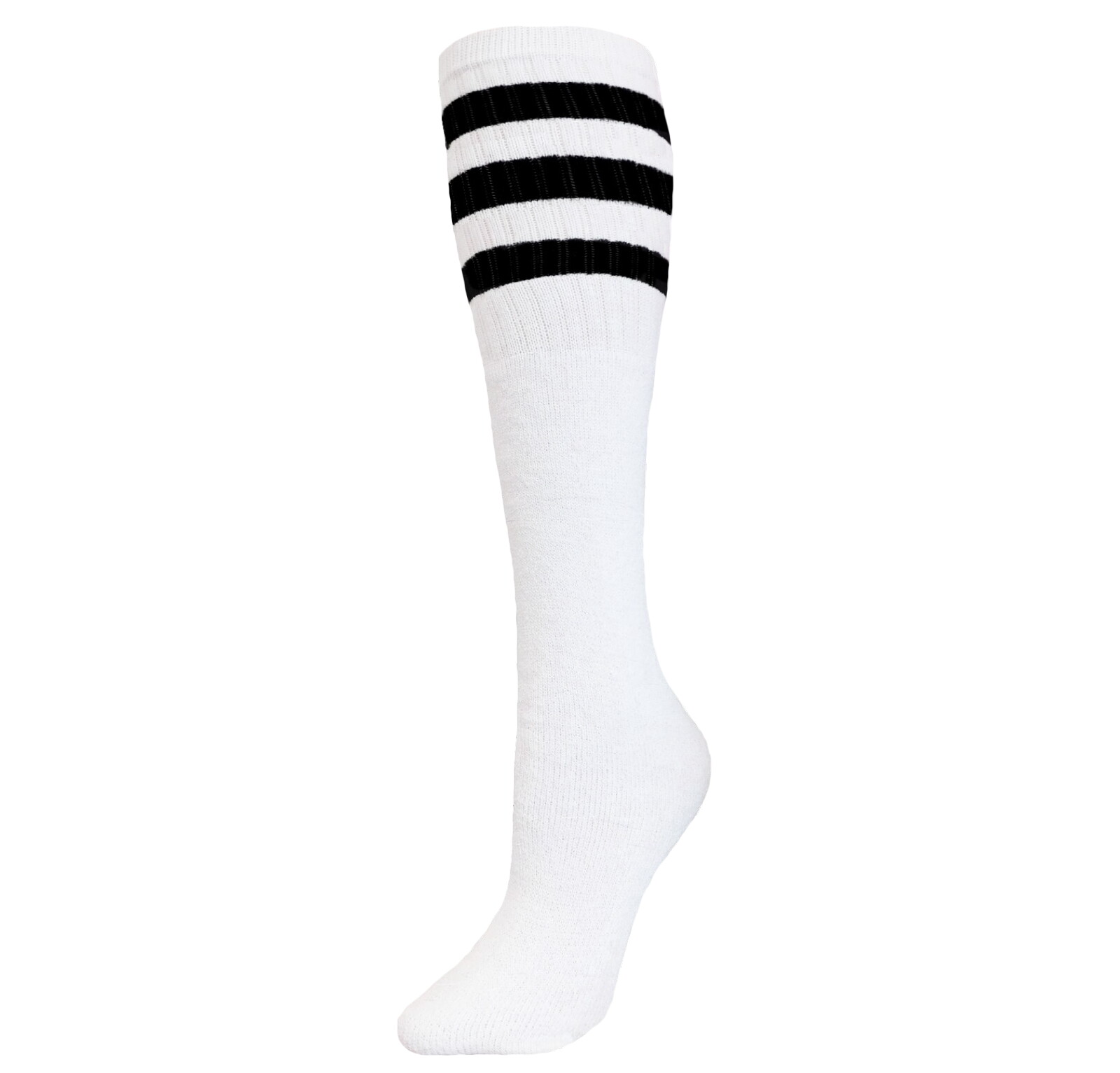4 Pair Tube Socks Old School Black Striped Socks 22 Inches Full Cushion Cotton