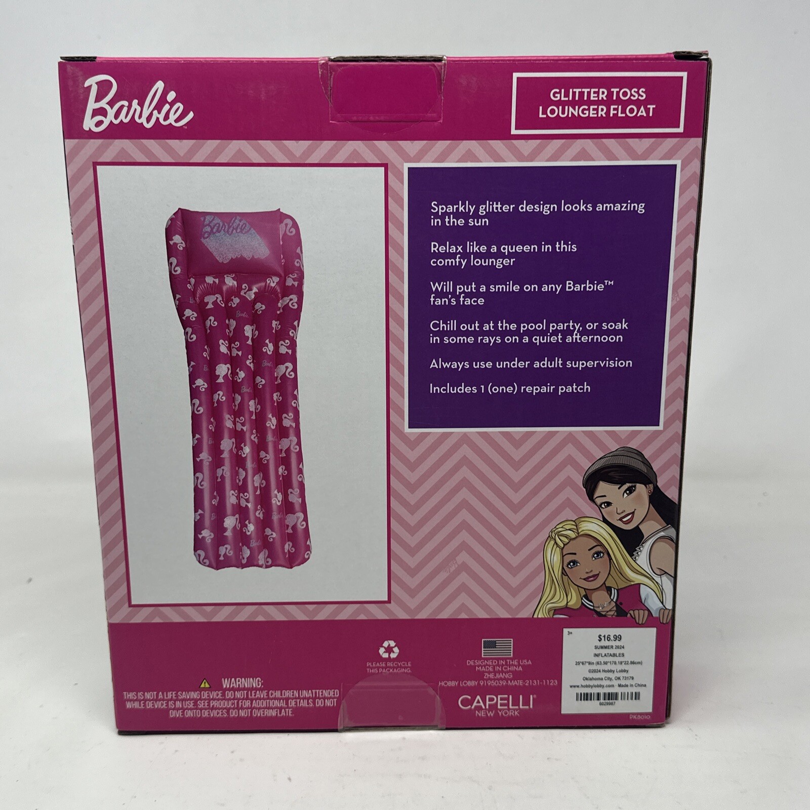 Barbie Pool Raft Lounger Float 67x25 9in Sparkle Glitter Pool Party NRFB
