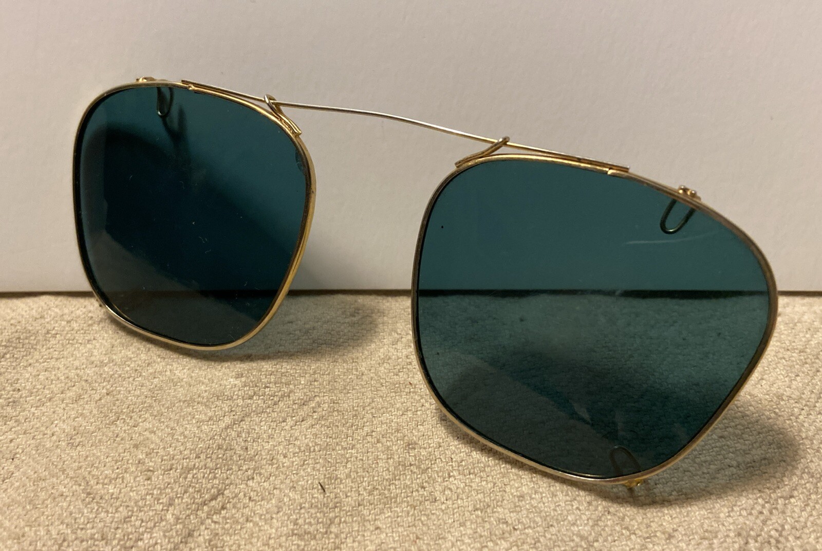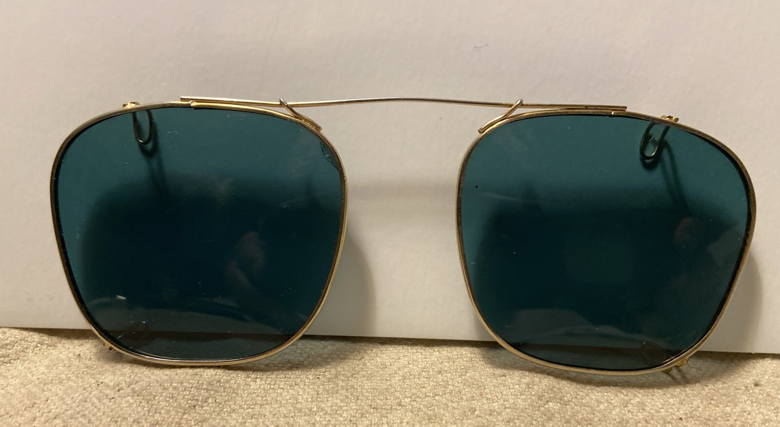 Vintage Green Shaded Brass/Plastic Clip-On Sunglasses