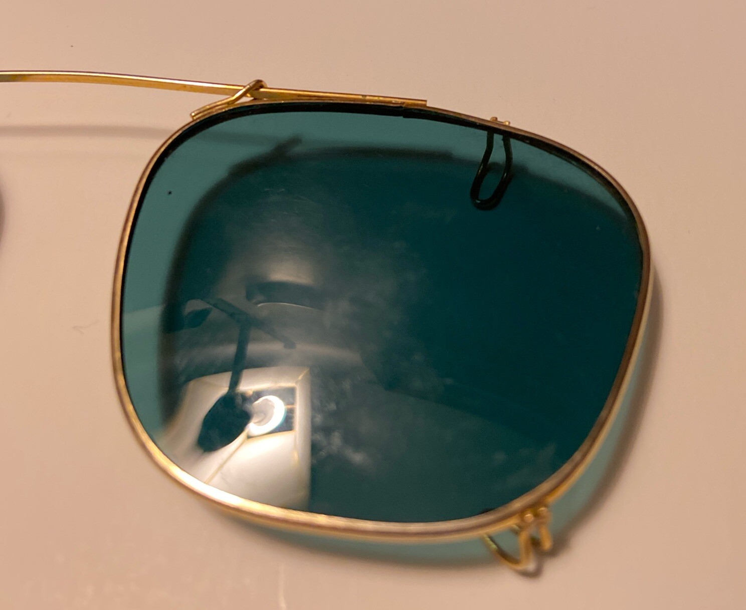 как выглядит Vintage Green Shaded Brass/Plastic Clip-On Sunglasses фото