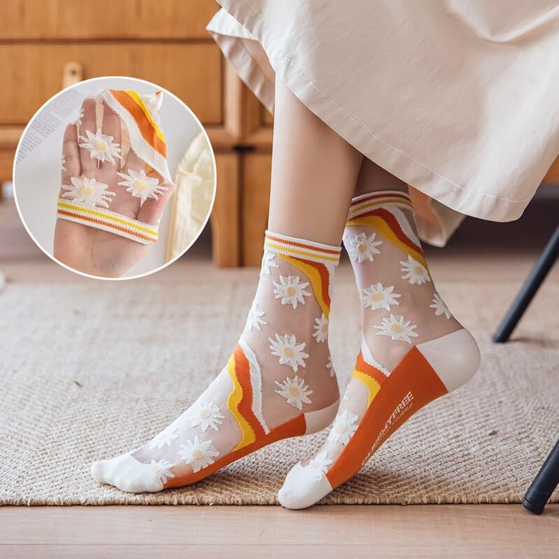 Womens Sheer Socks Summer Transparent Thin Mesh Lace Jacquard Crystal Glass S...