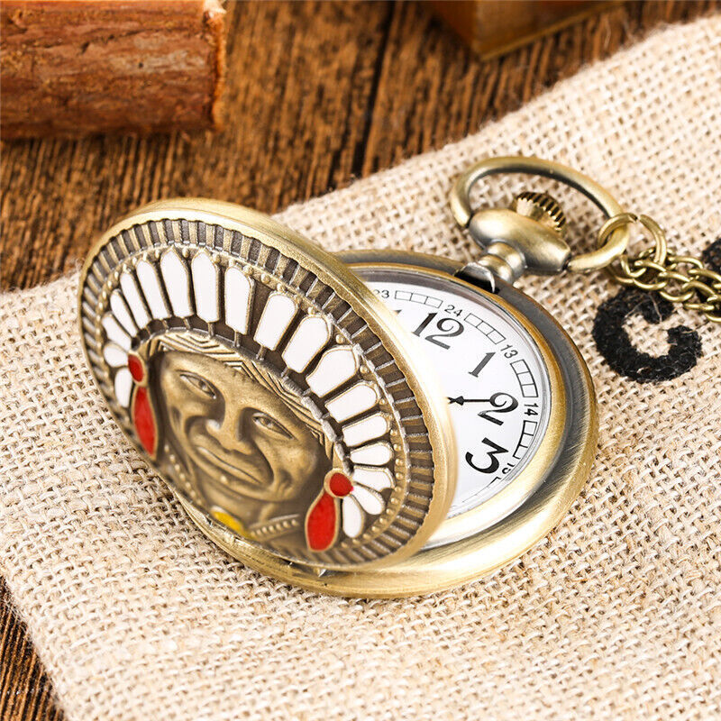 Old Fashion Indian Man Design Unisex Quartz Analog Pocket Watch 80CM Chain Gift