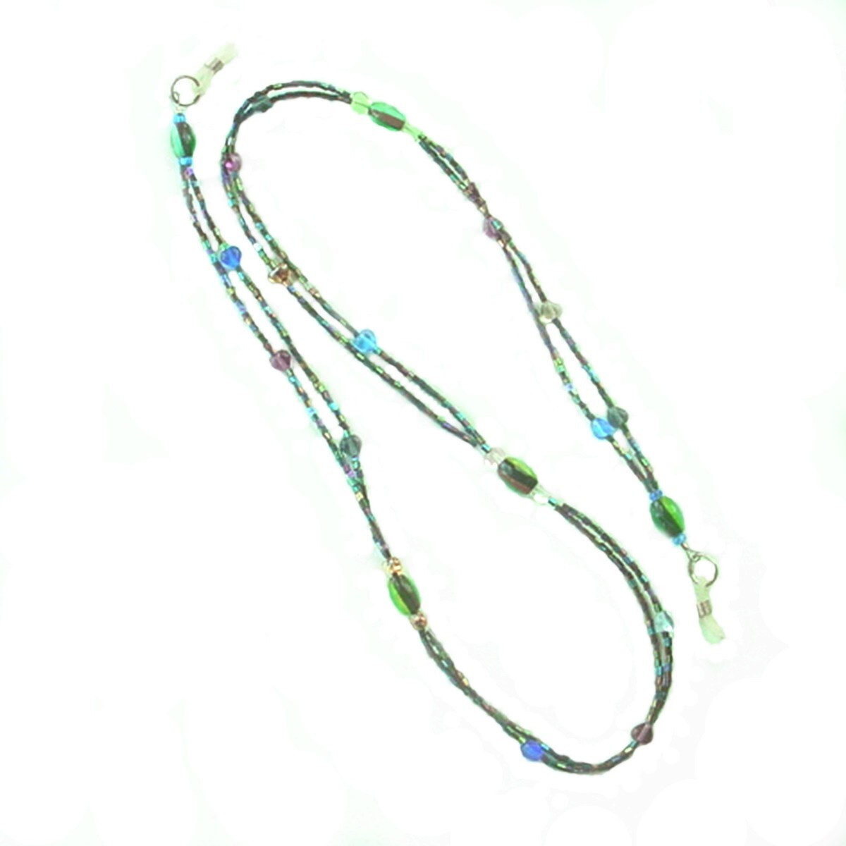 BEADED EYEGLASS CHAIN 2 STRAND 26 L with GLASS HEARTS HANDMADE SUNGLASS HOLDER