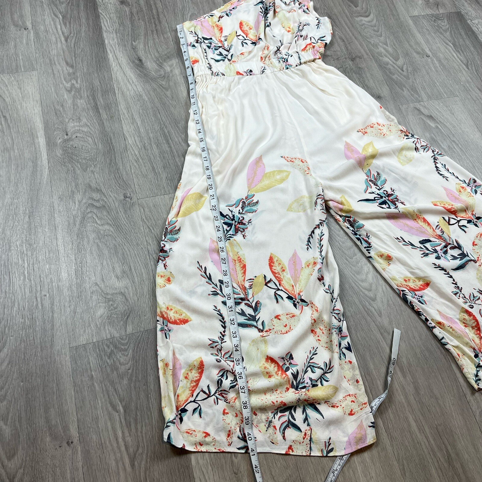 Free People Jumpsuit Island Time Floral Womens Small Cream One Shoulder Wide Leg