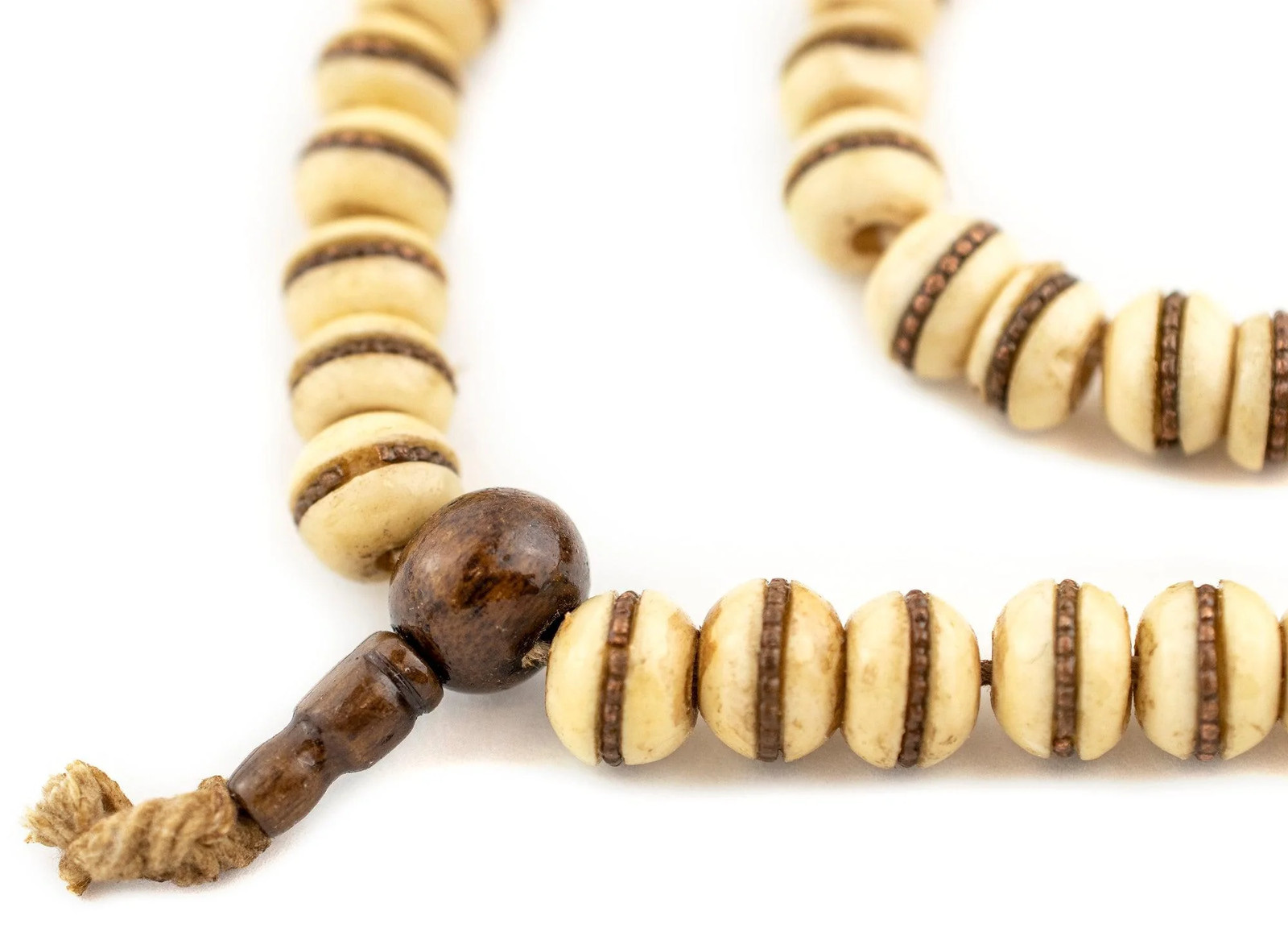 Copper-Inlaid Cream Bone Mala Beads 10mm Nepal White Round Large Hole