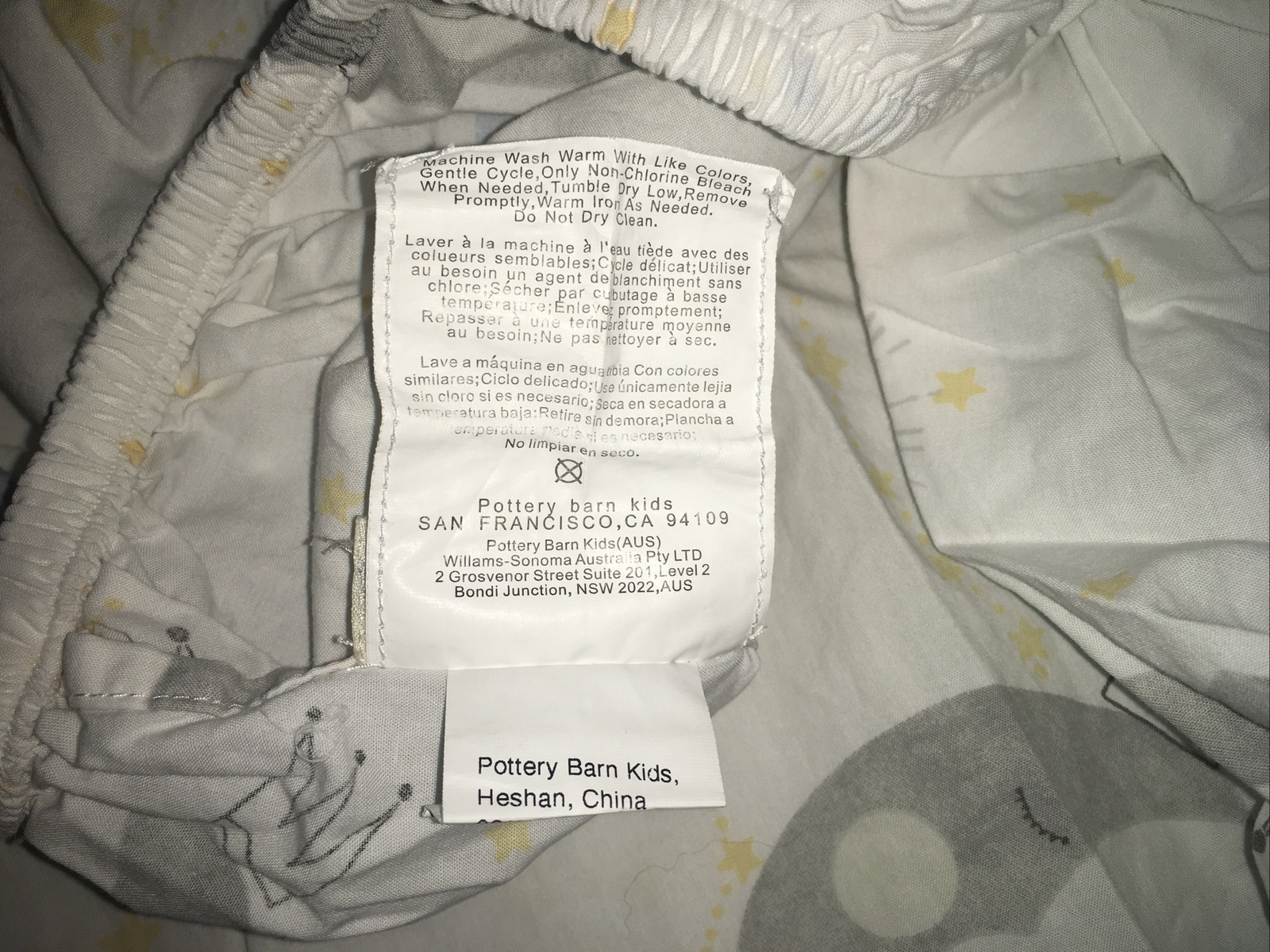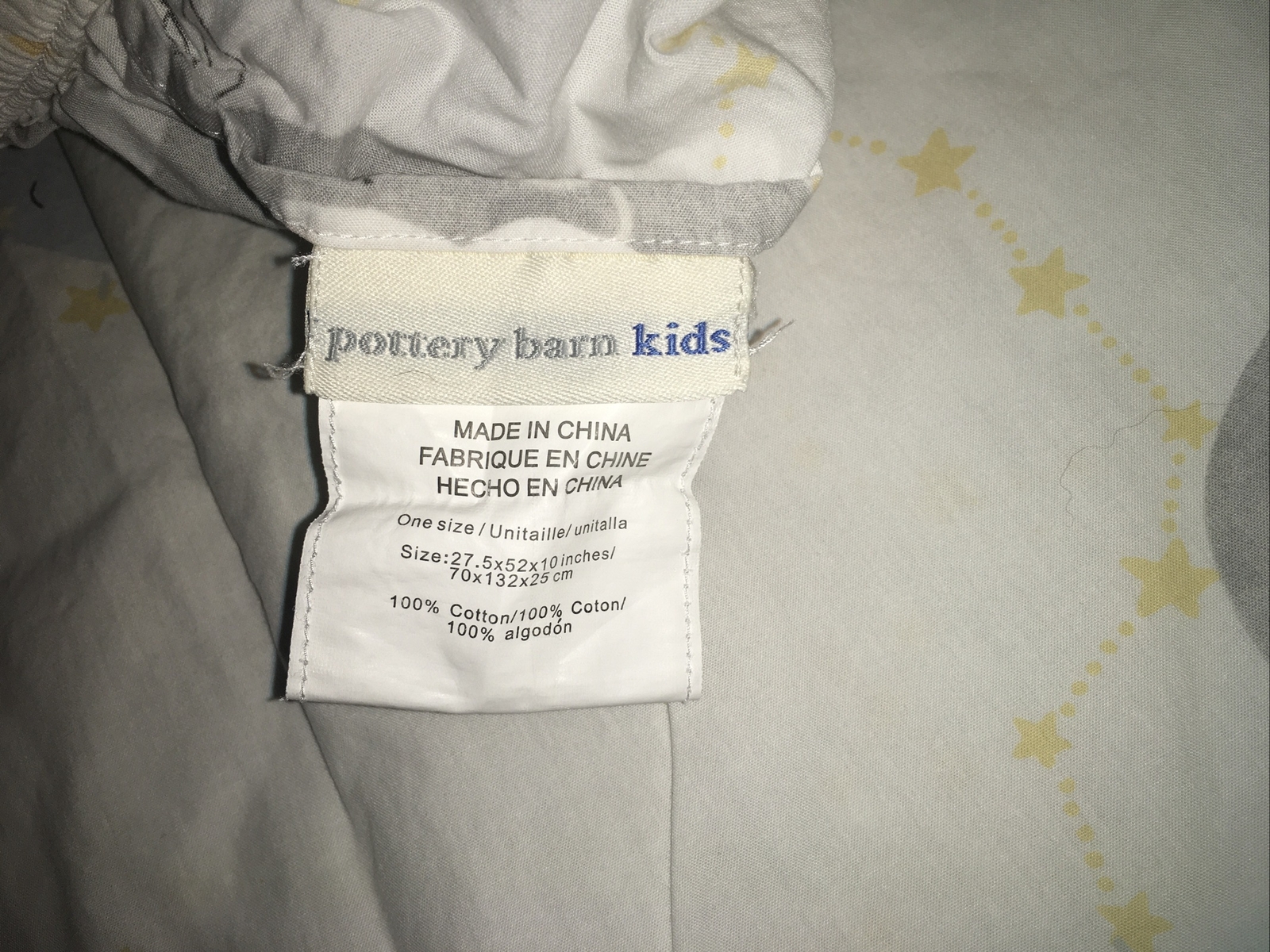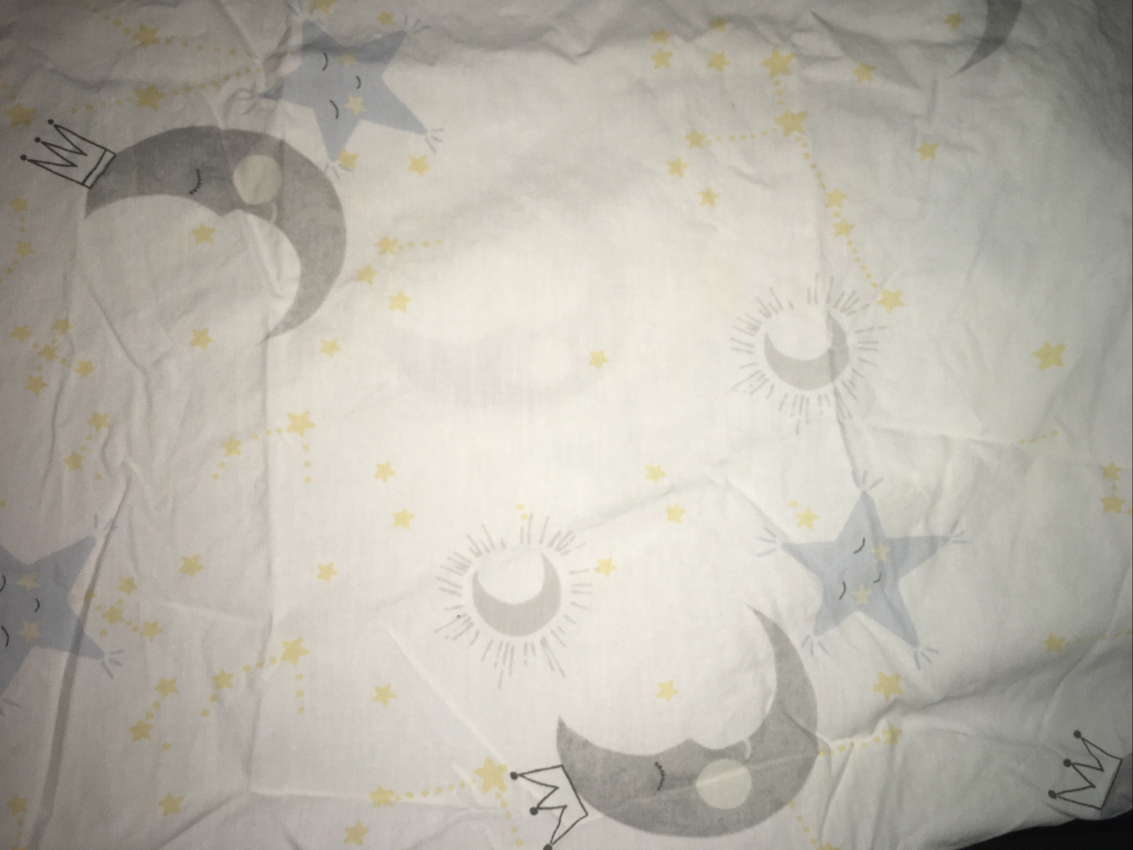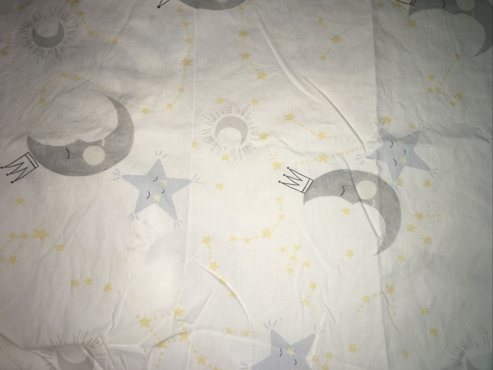 как выглядит Pottery Barn Kids Sleepy Moon Crib Fitted Sheet Blue Gray White Yellow Stars фото