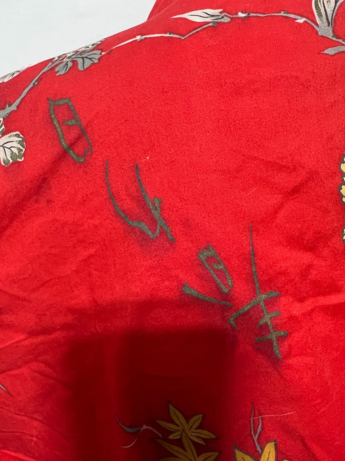 Red Floral Women Robe Cotton Kimono Medium Belted Ichiban Japan Vintage