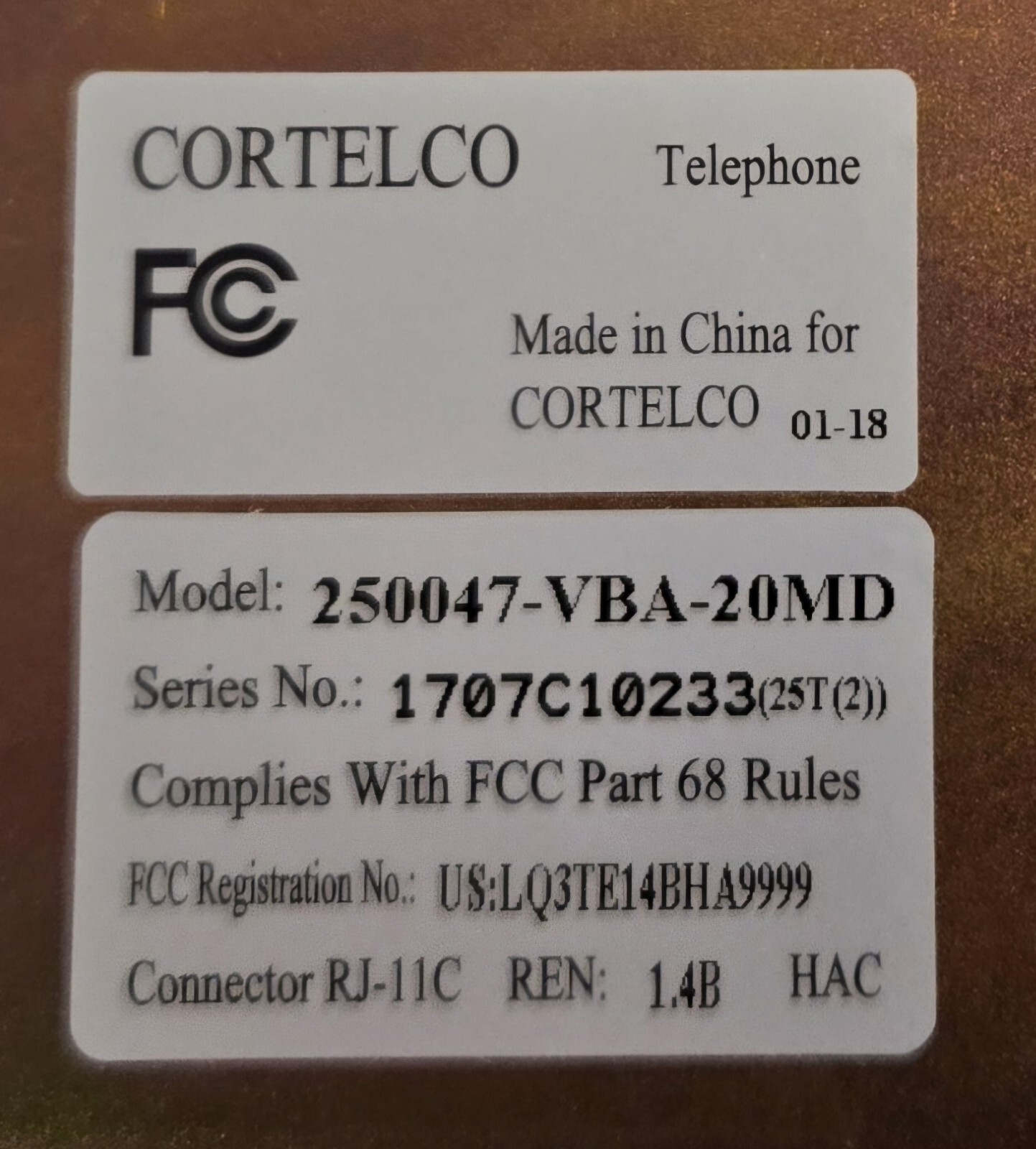 CORTELCO 250047-VBA-20M Desk w/ Volume RED