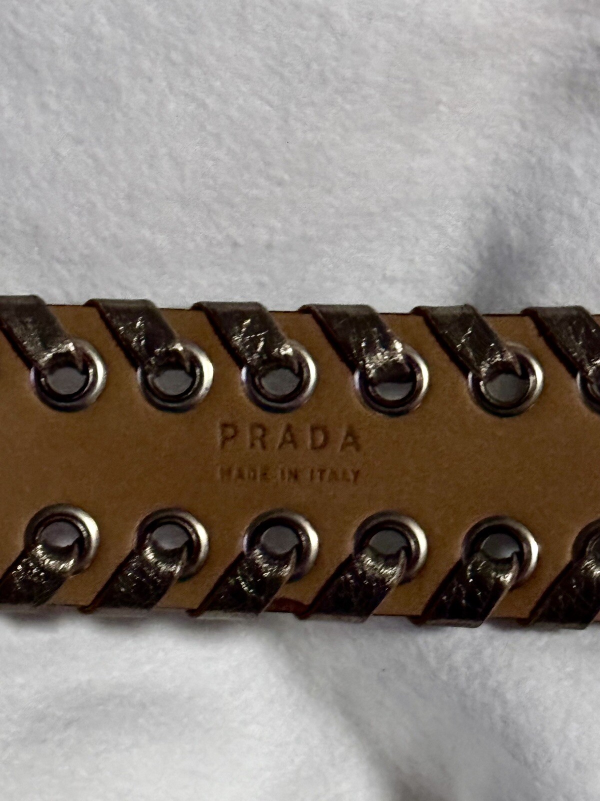 как выглядит Prada Metallic Light Gold/ Champagne leather belt, Size 85/34 Style 1C 3871 фото