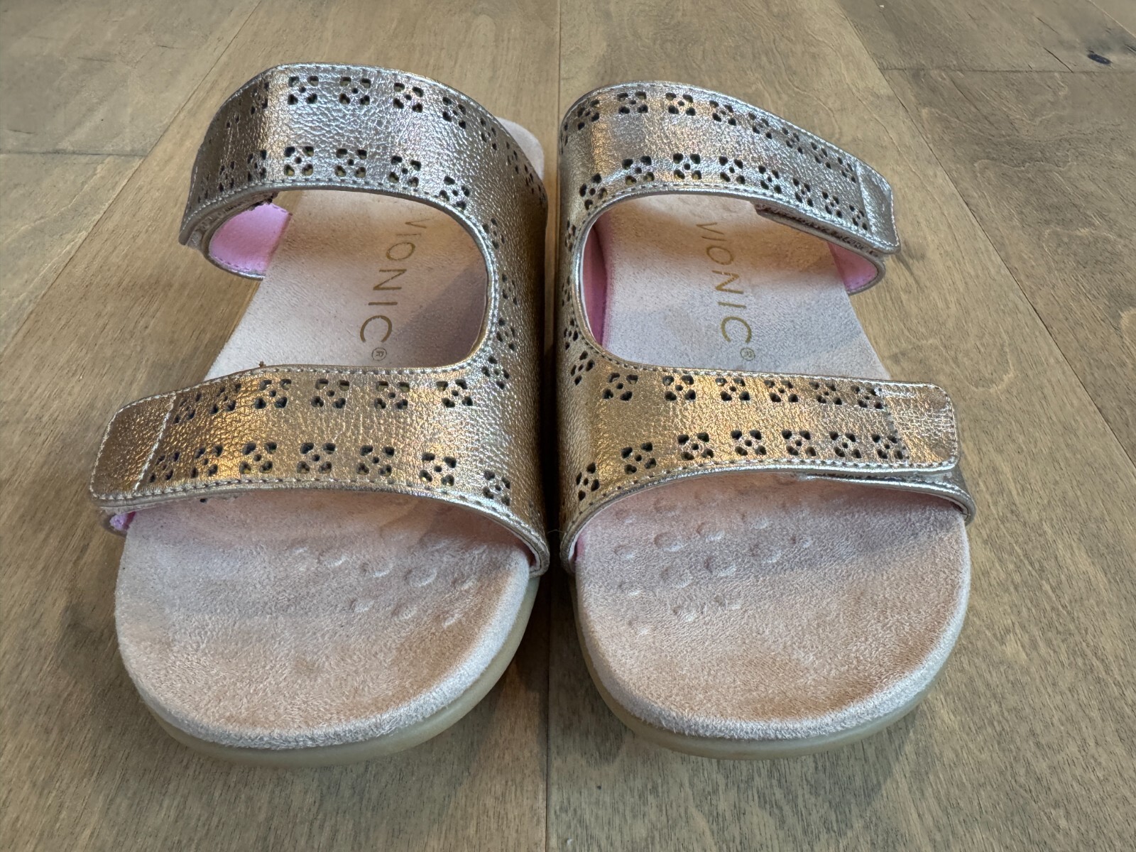 Vionic Nakia Adjustable Slide Orthotic Sandals Gold Pink Women's Size 5 EUC