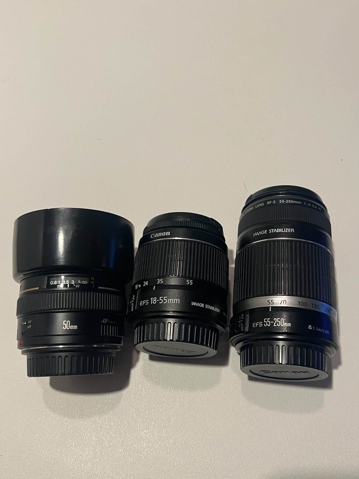 Canon EOS Rebel T2i DSLR Camera Canon EF-S 55-250mm EF-S 18-55mm 50mm f/1.
