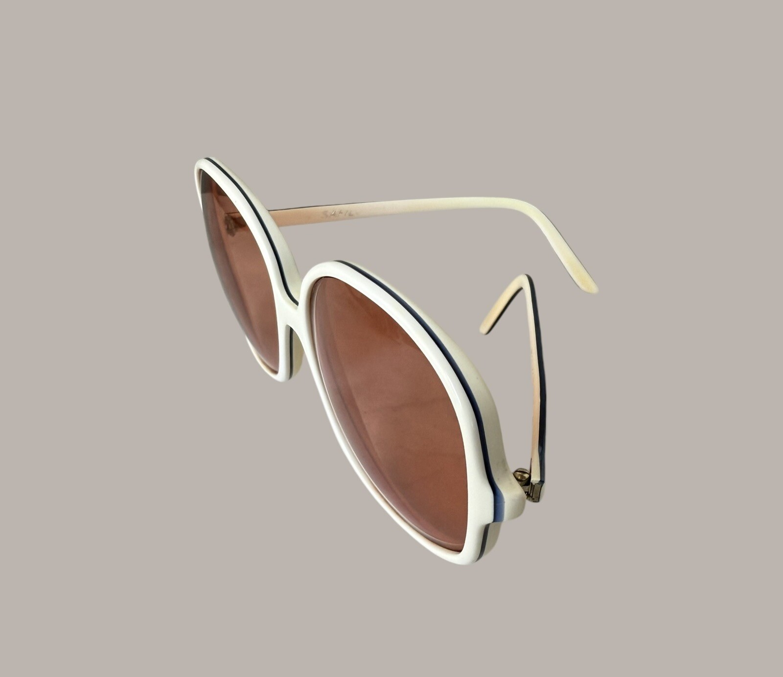 как выглядит VTG Safilo White Frame Blue Stripe Oversize Sunglasses Italy 106 PRESCRIPTION фото