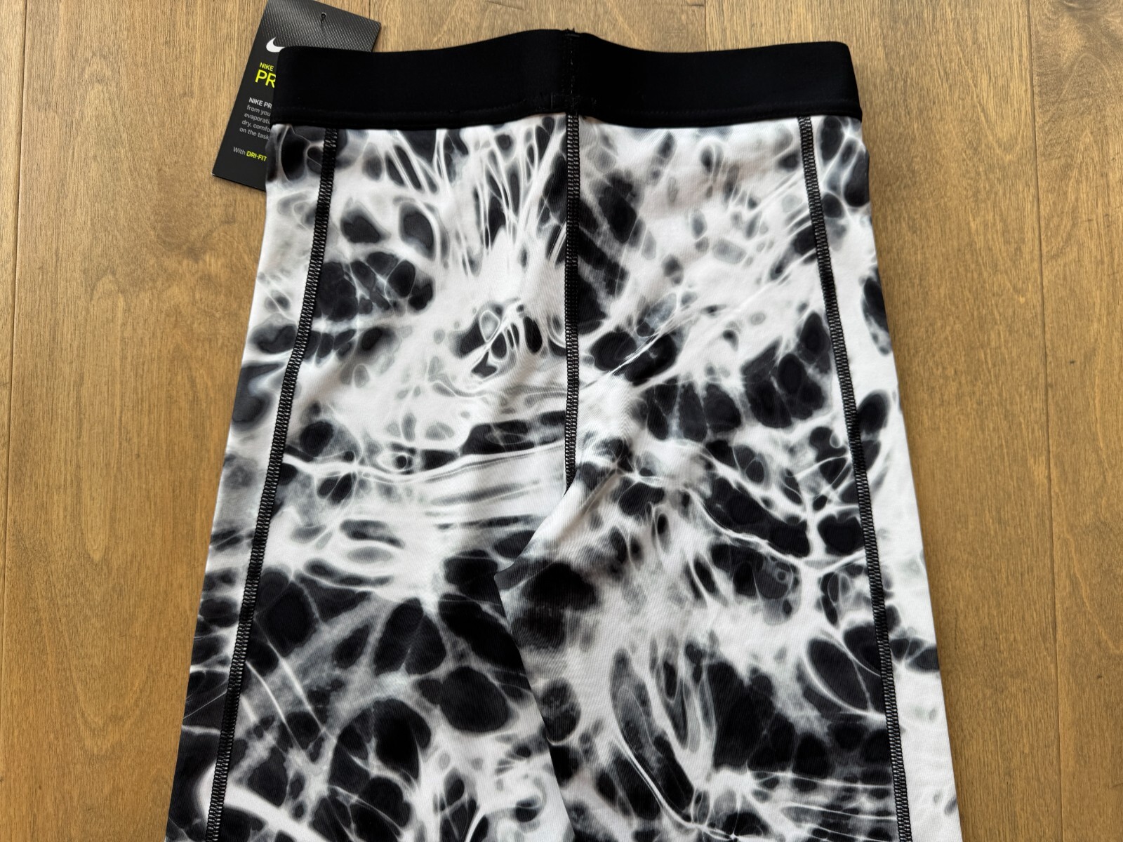 как выглядит Nike Pro Dri-Fit Black White Tie Dye Tight Capris Leggings Pants Girls Large NWT фото