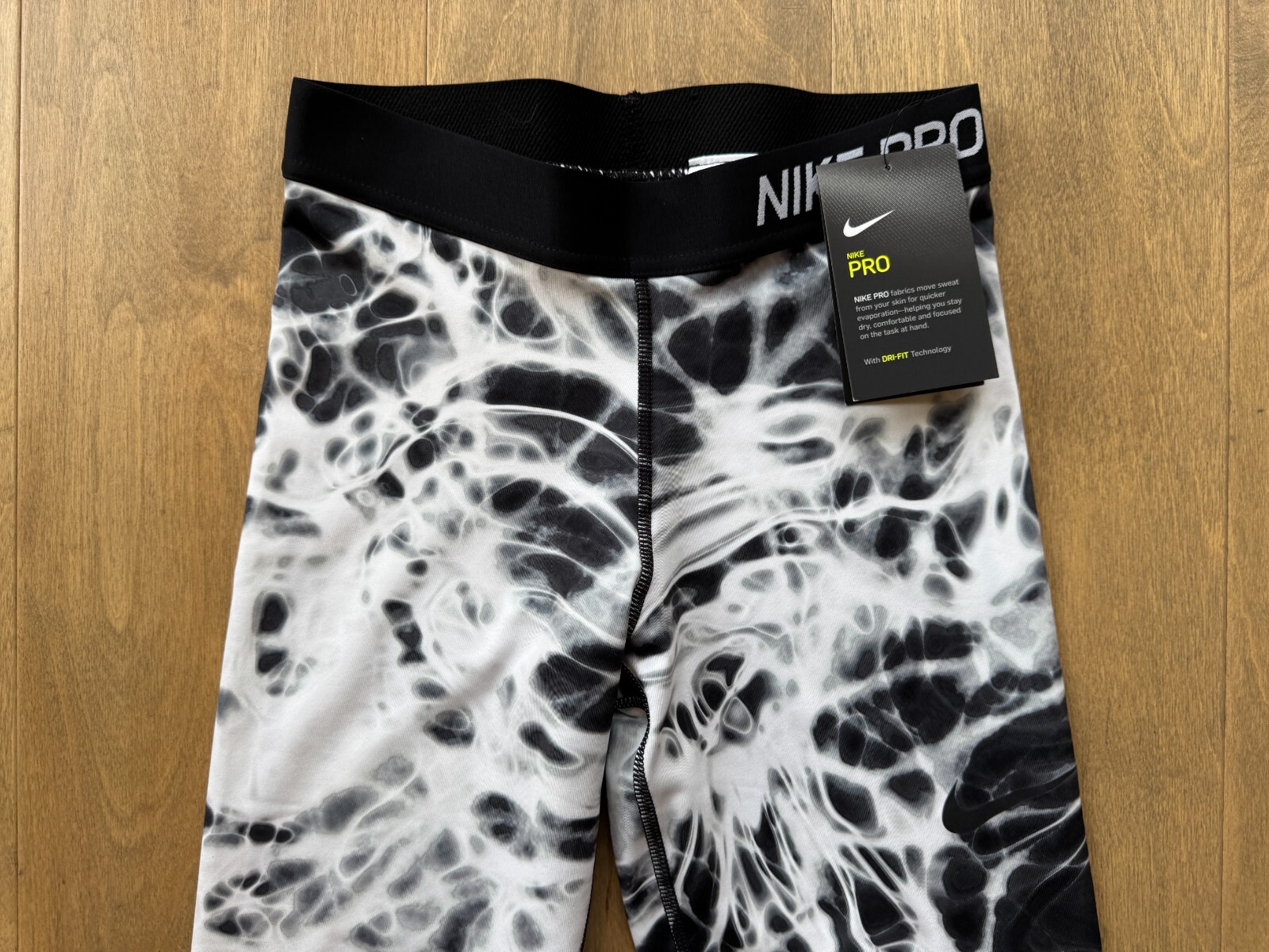 Nike Pro Dri-Fit Black White Tie Dye Tight Capris Leggings Pants Girls Large NWT