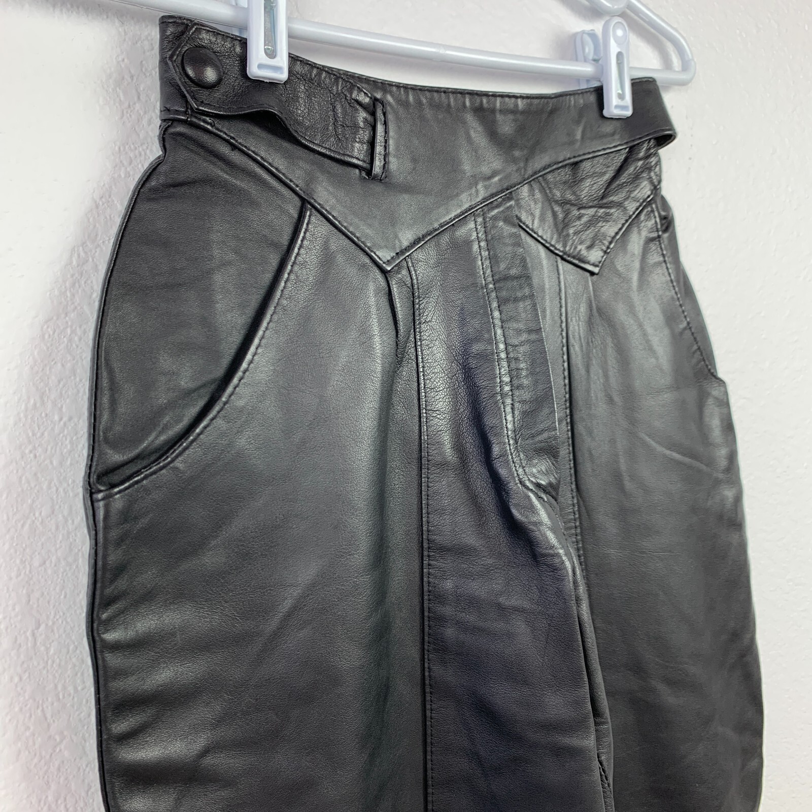 как выглядит Vintage Frank Laurens Paris Black Real Leather Glam Rock Trousers Pants XS Sm фото