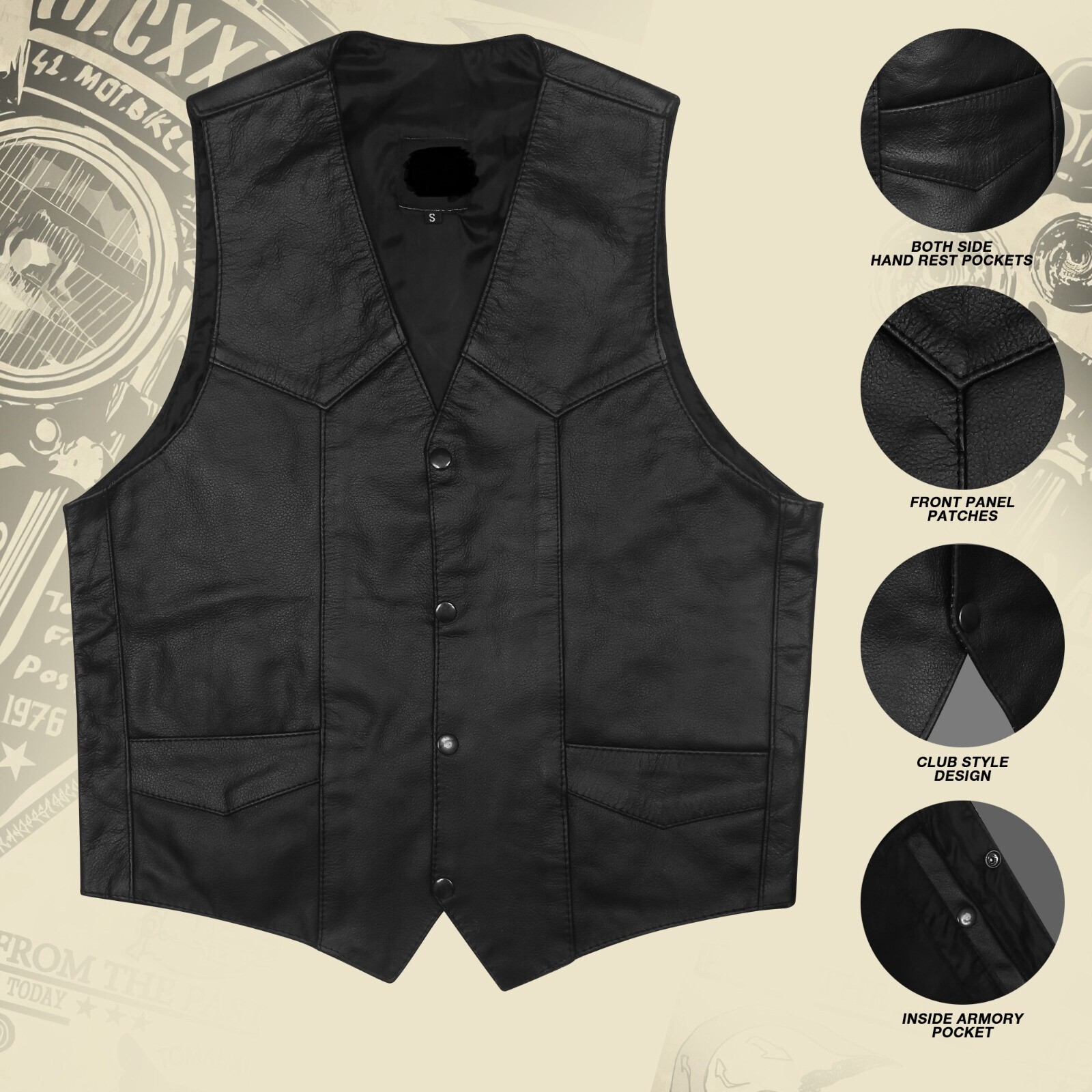 Men's Motorcycle vest Genuine Leather vest Club Style Biker Vest with Gun Pocket