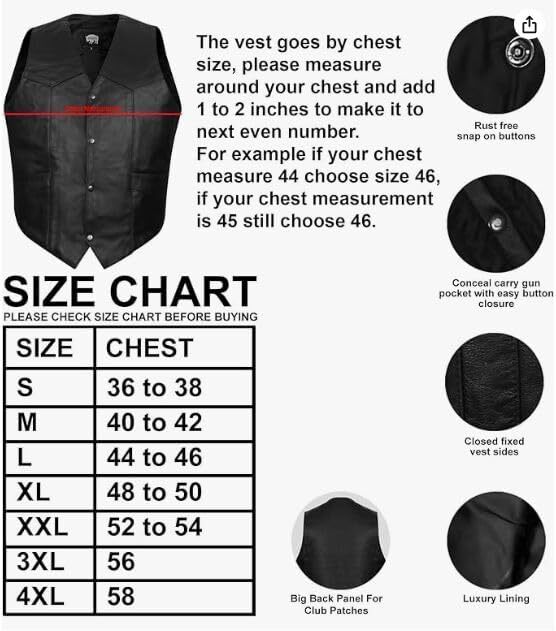 как выглядит Mens Motorcycle vest Genuine Leather vest Club Style Biker Vest with Gun Pocket фото