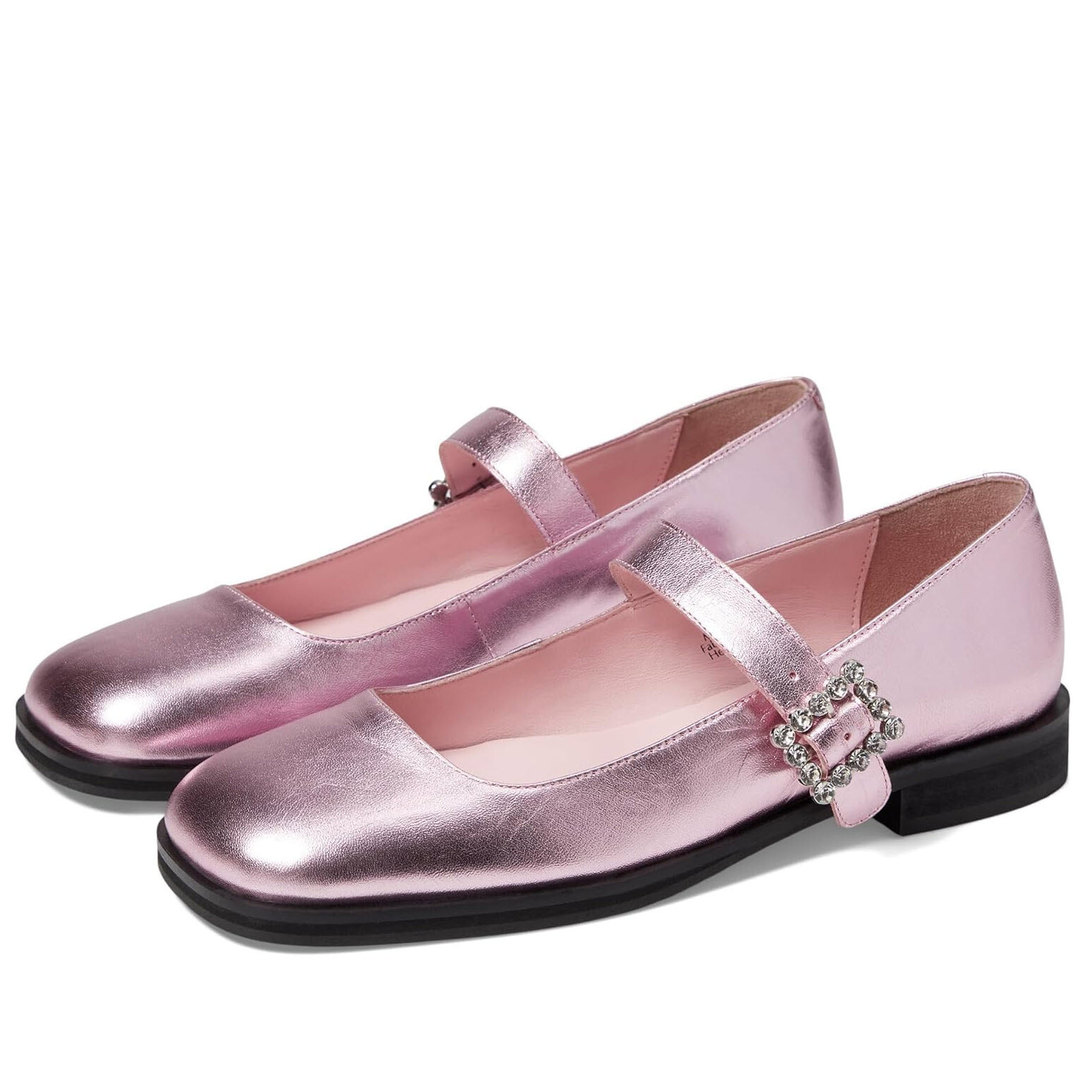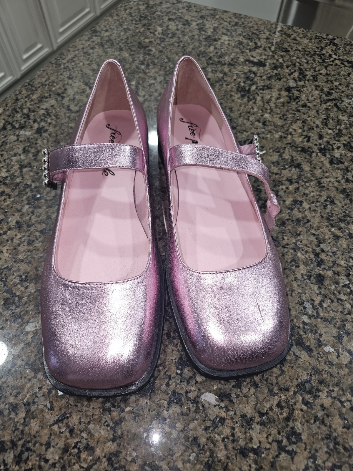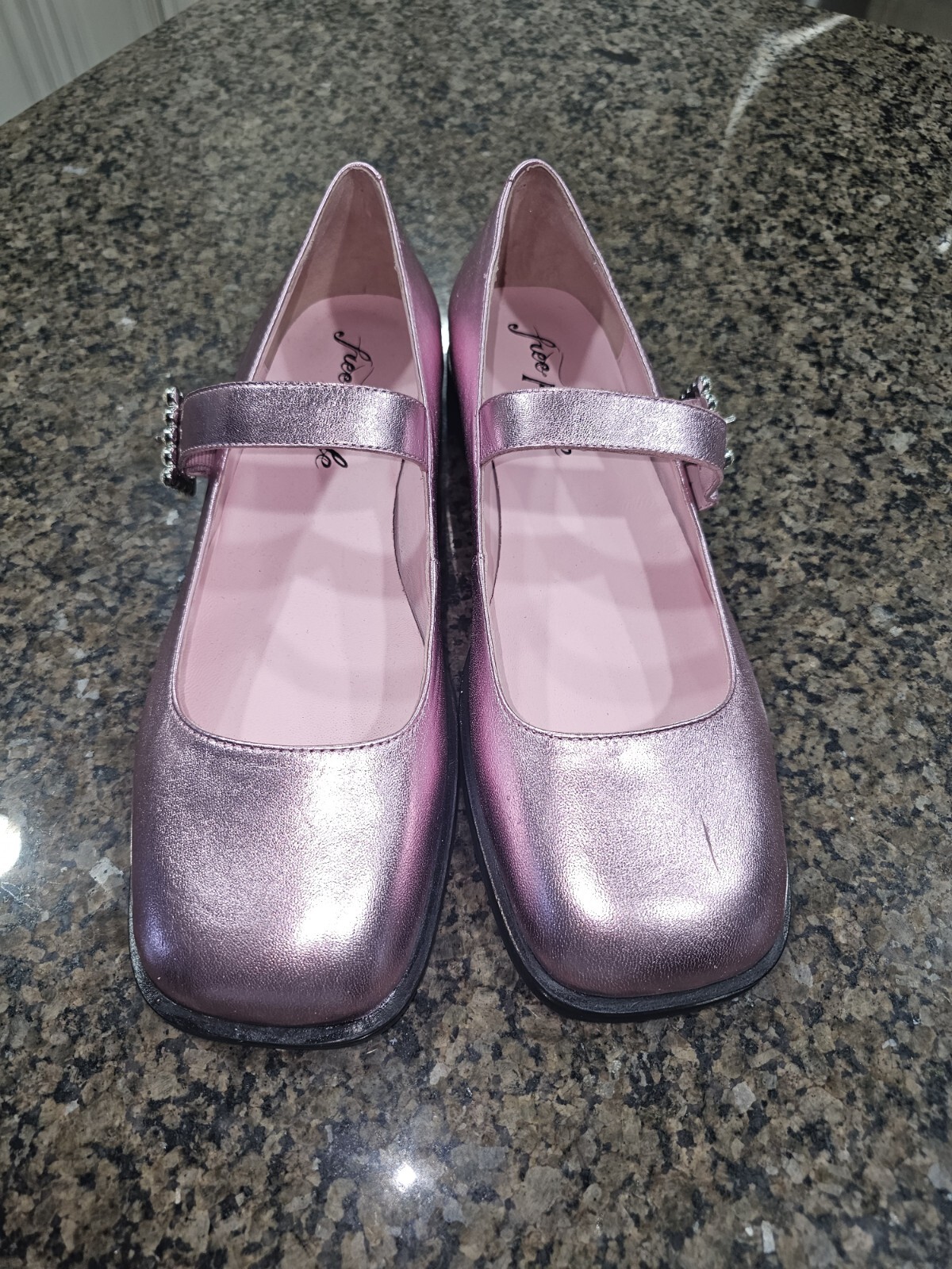 как выглядит Free People Rumor Diamante Mary Jane Flat Shoes In Frost Pink Metallic Sz 10 фото
