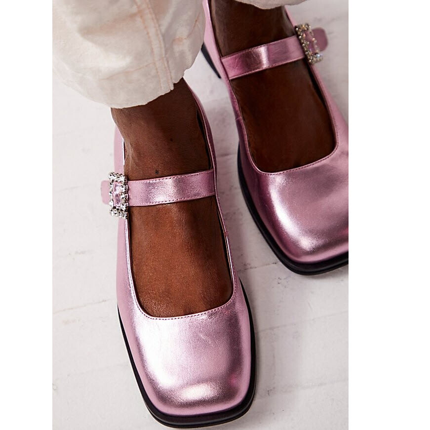Free People Rumor Diamante Mary Jane Flat Shoes In Frost Pink Metallic Sz 10