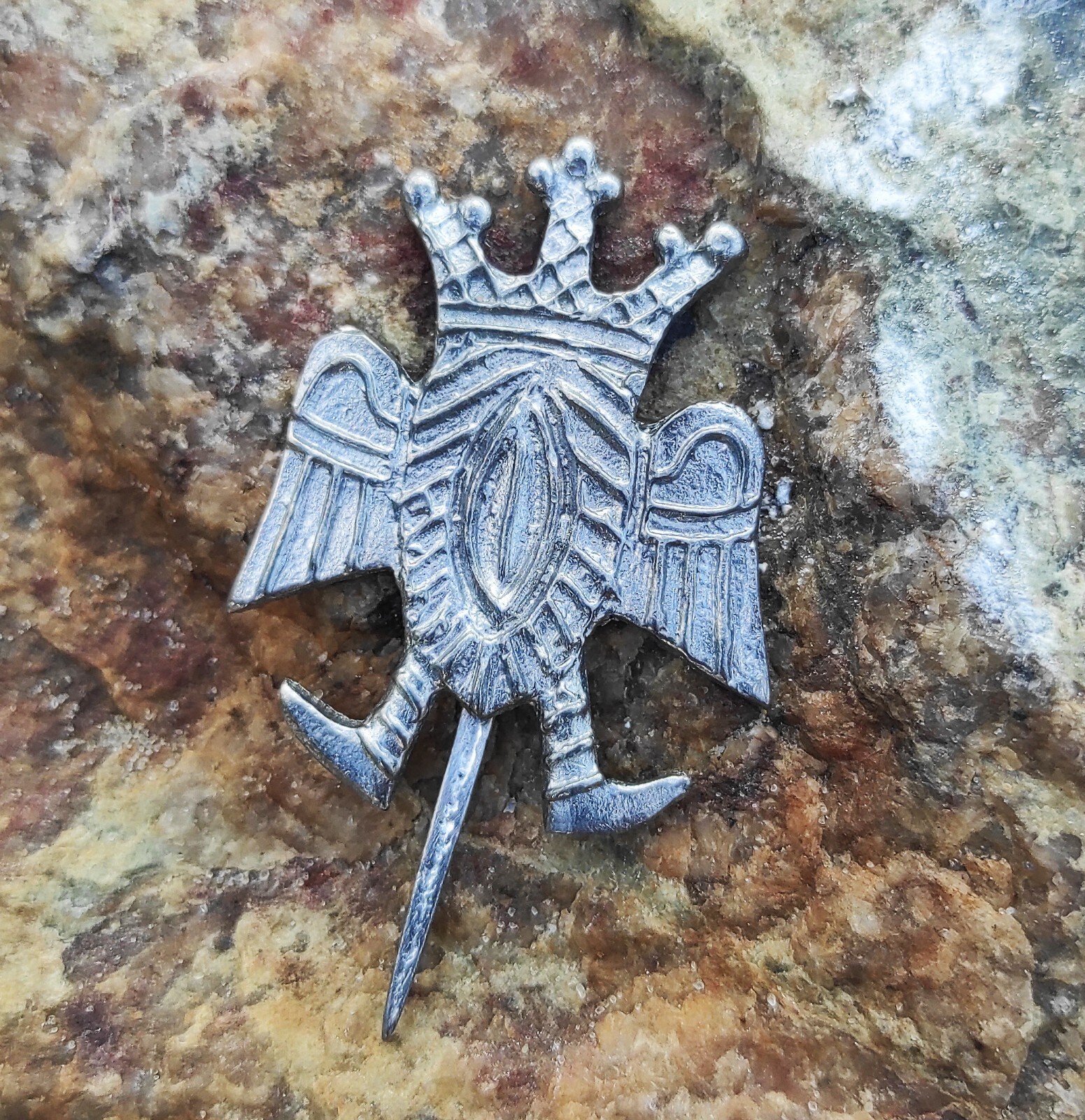 как выглядит Medieval Badge Winged Vulva Queen, 14th Century Vagina Pewter Pin фото