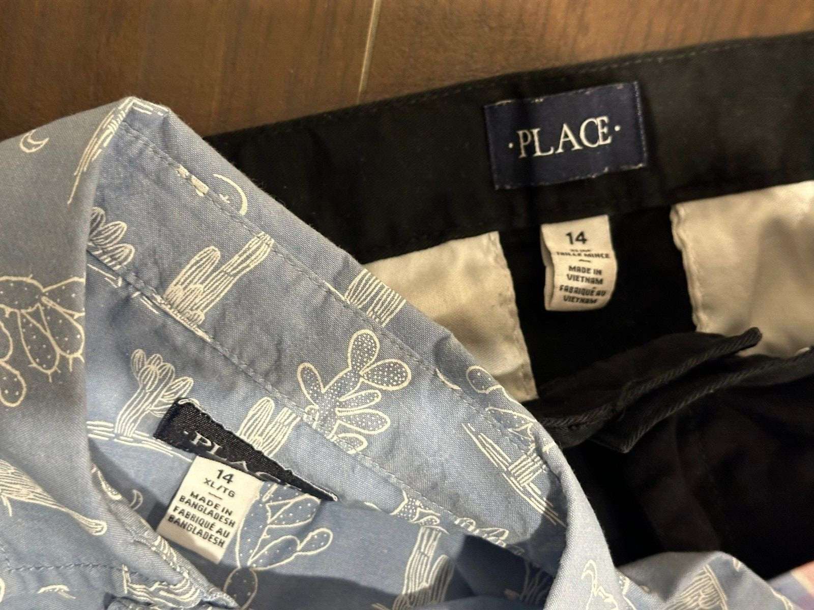 TCP BOYS PLACE LOT 4PC SHIRT DRESS SLIM BLACK PANTS OUTFIT SIZE 14Y WORN ONCE