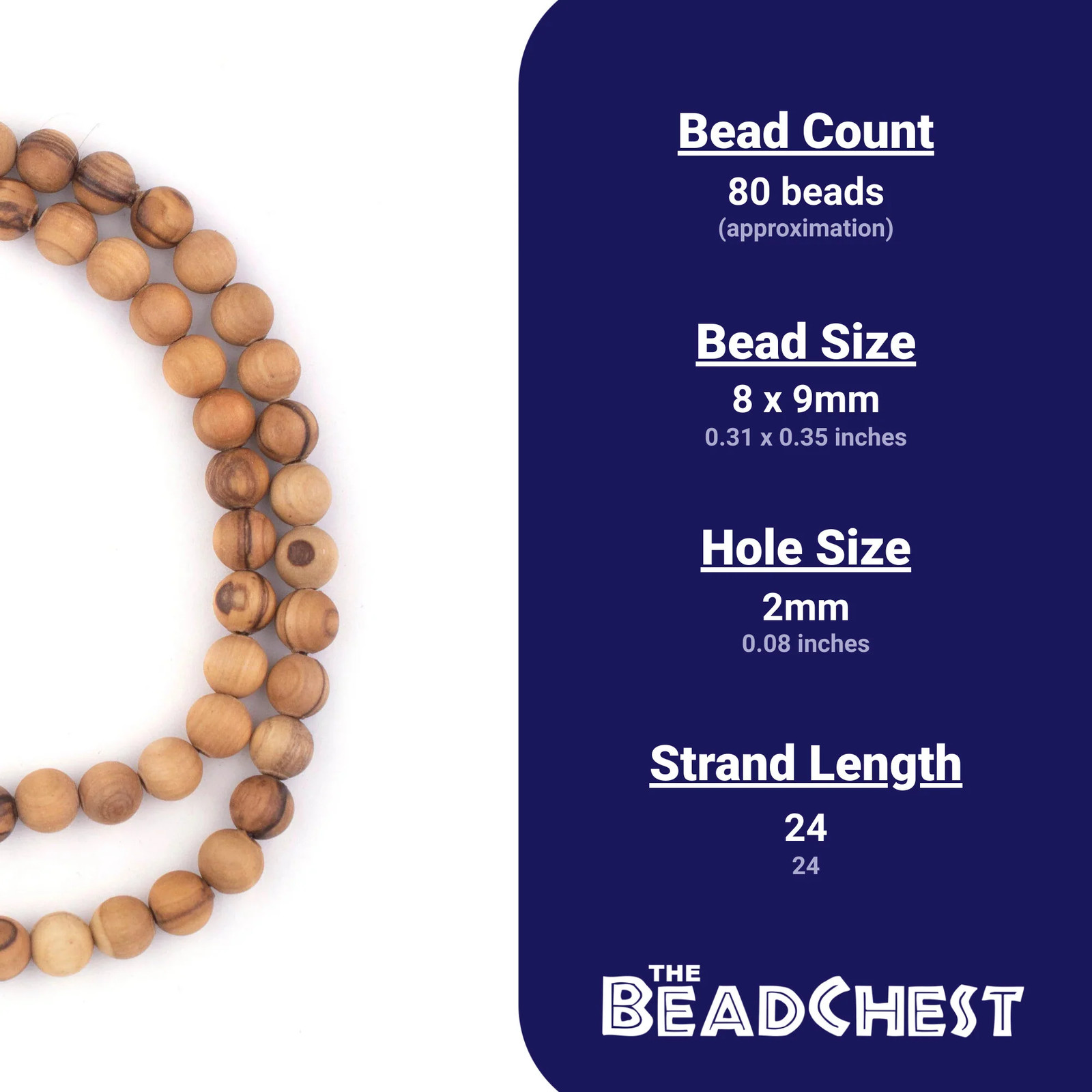 Round Olive Wood Beads from Bethlehem 8mm Middle East Brown Large Hole 24