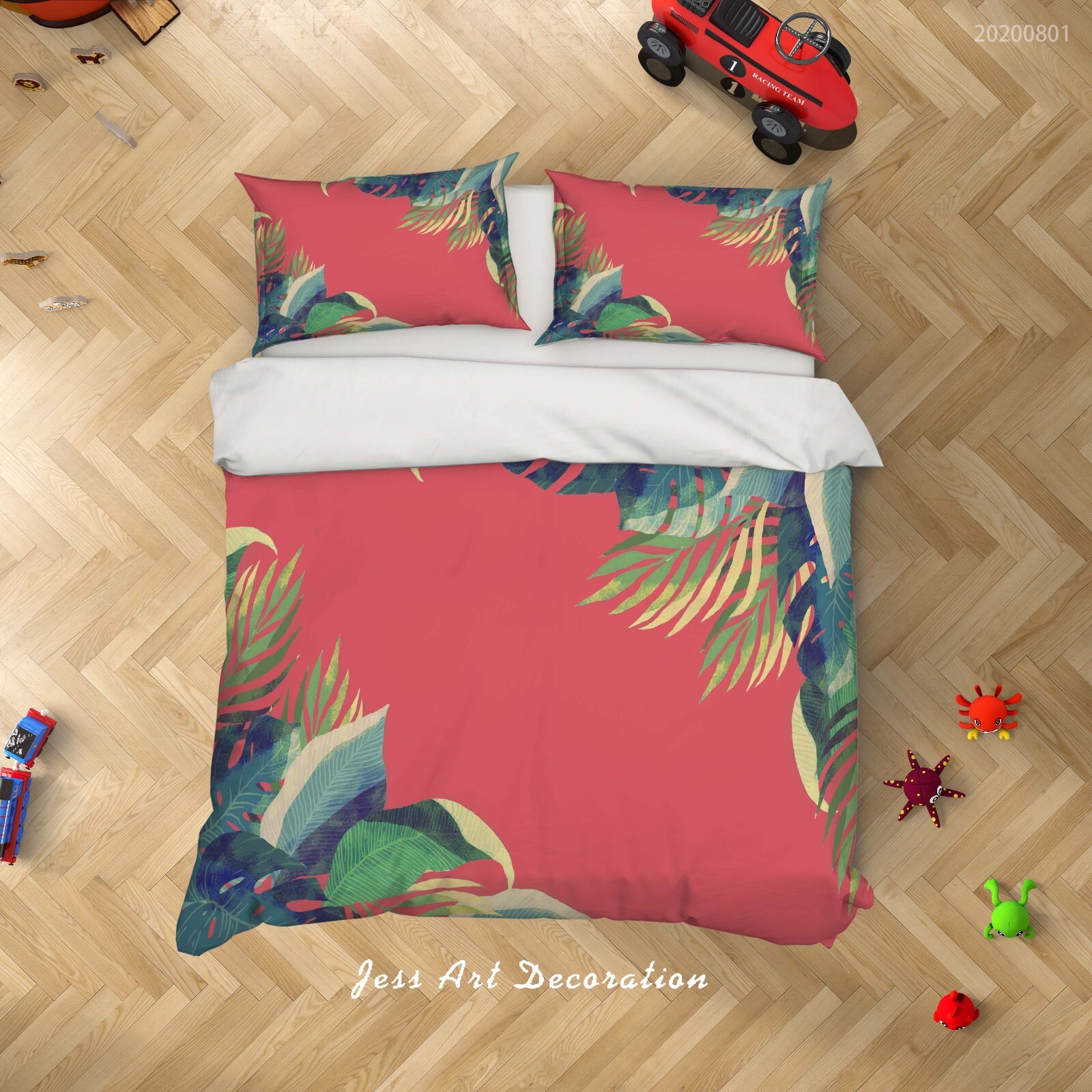 3D Tropical Leaves Pink Quilt Cover Set Duvet Cover Bedding Pillowcases