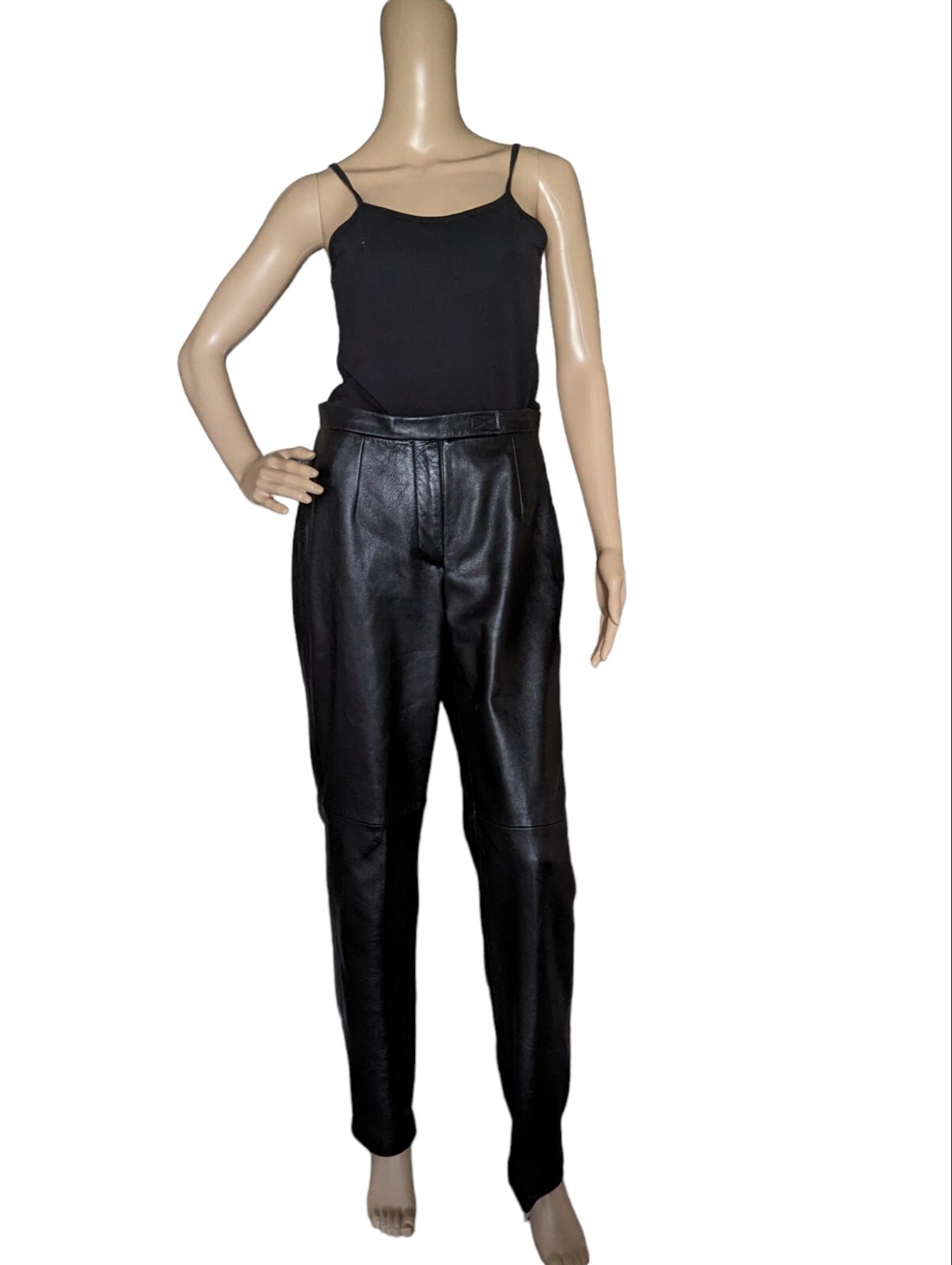как выглядит Black Leather Pants High Waist Vintage 90s Jacqueline Ferrar Size 8 фото