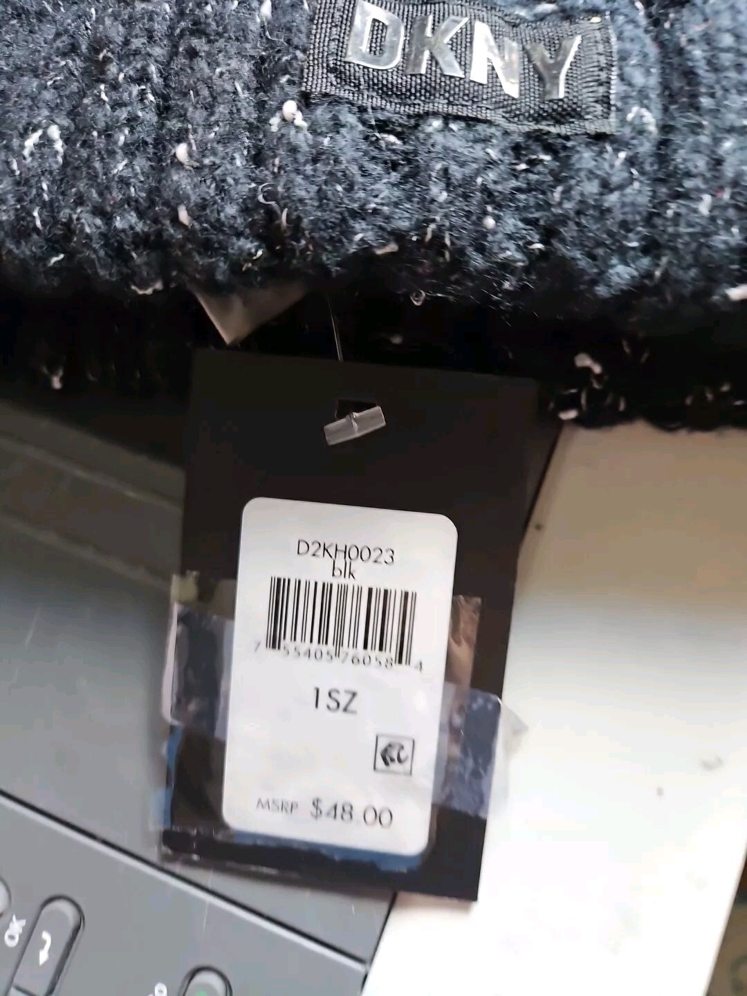 как выглядит New DKNY Pom Pom Hat Beanie Black Knit Fleece Lined Ribbed Womens One Size фото