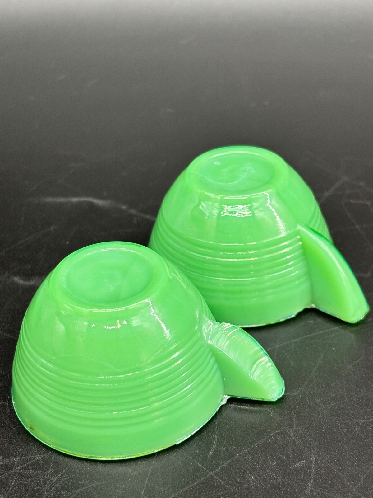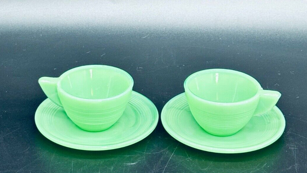 Original Akro Agate Cup and Saucer Set Jadeite Green Marked 1940's