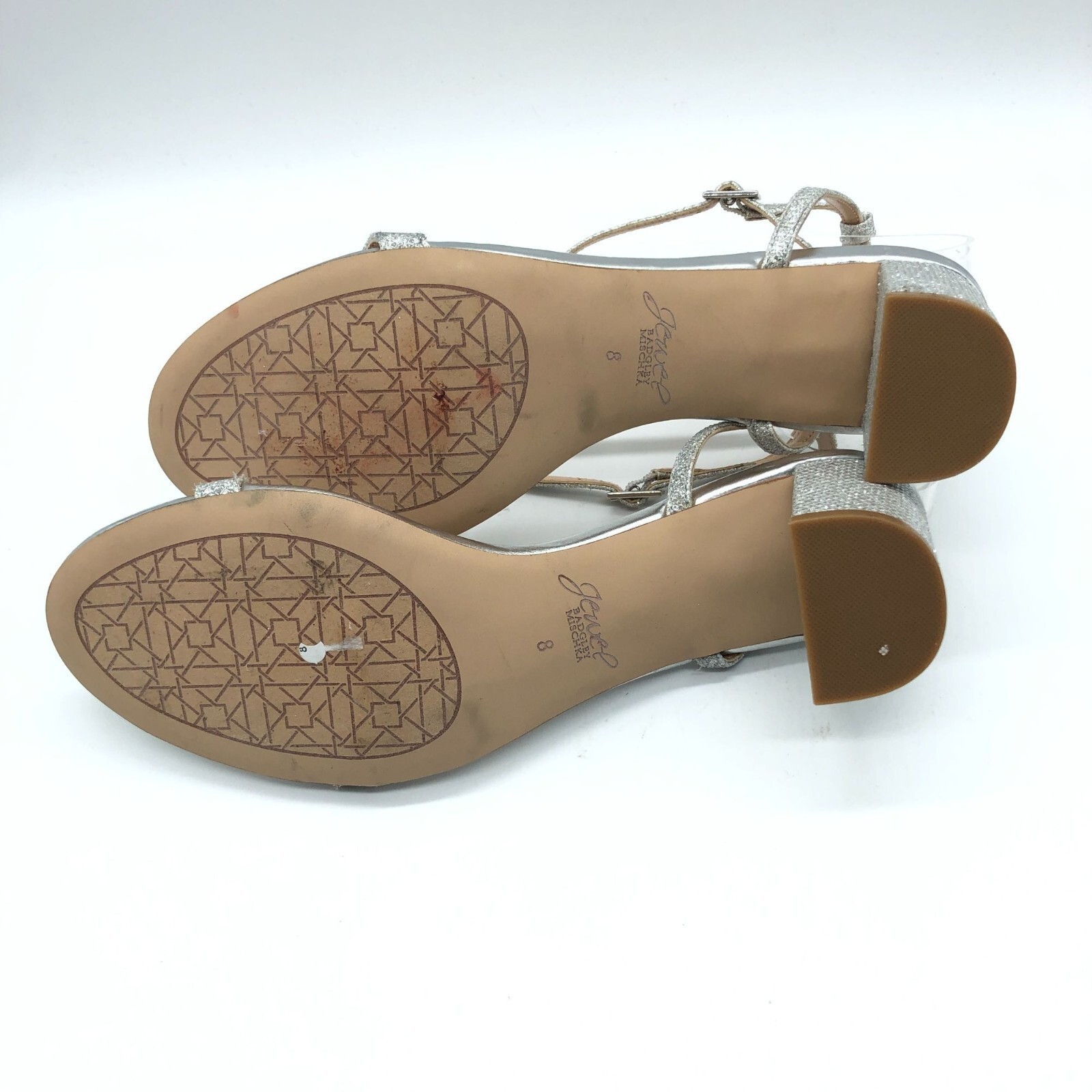Badgley Mischka Jewel Danni Silver Glitter Block Heel Sandals Size 8