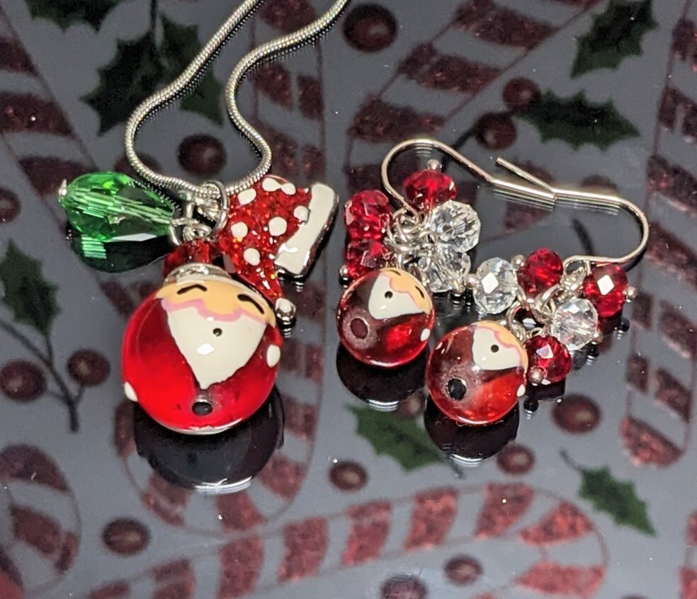 Christmas Necklace Earring set Santa Claus Handmade Jewelry Beaded Necklace