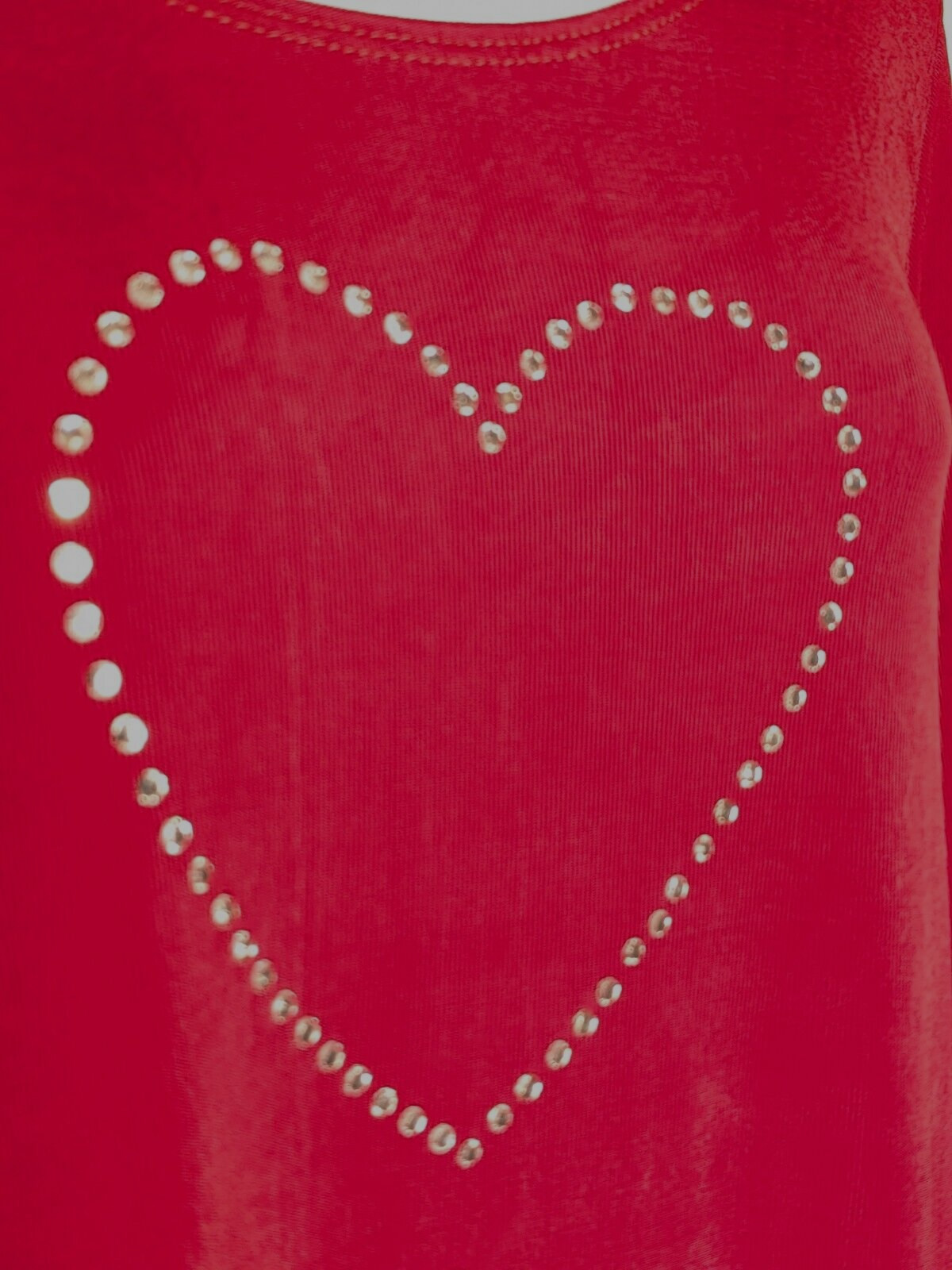 Vintage Slinky Brand Size Medium Red Rhinestone Heart Stretch High Low Tunic Top