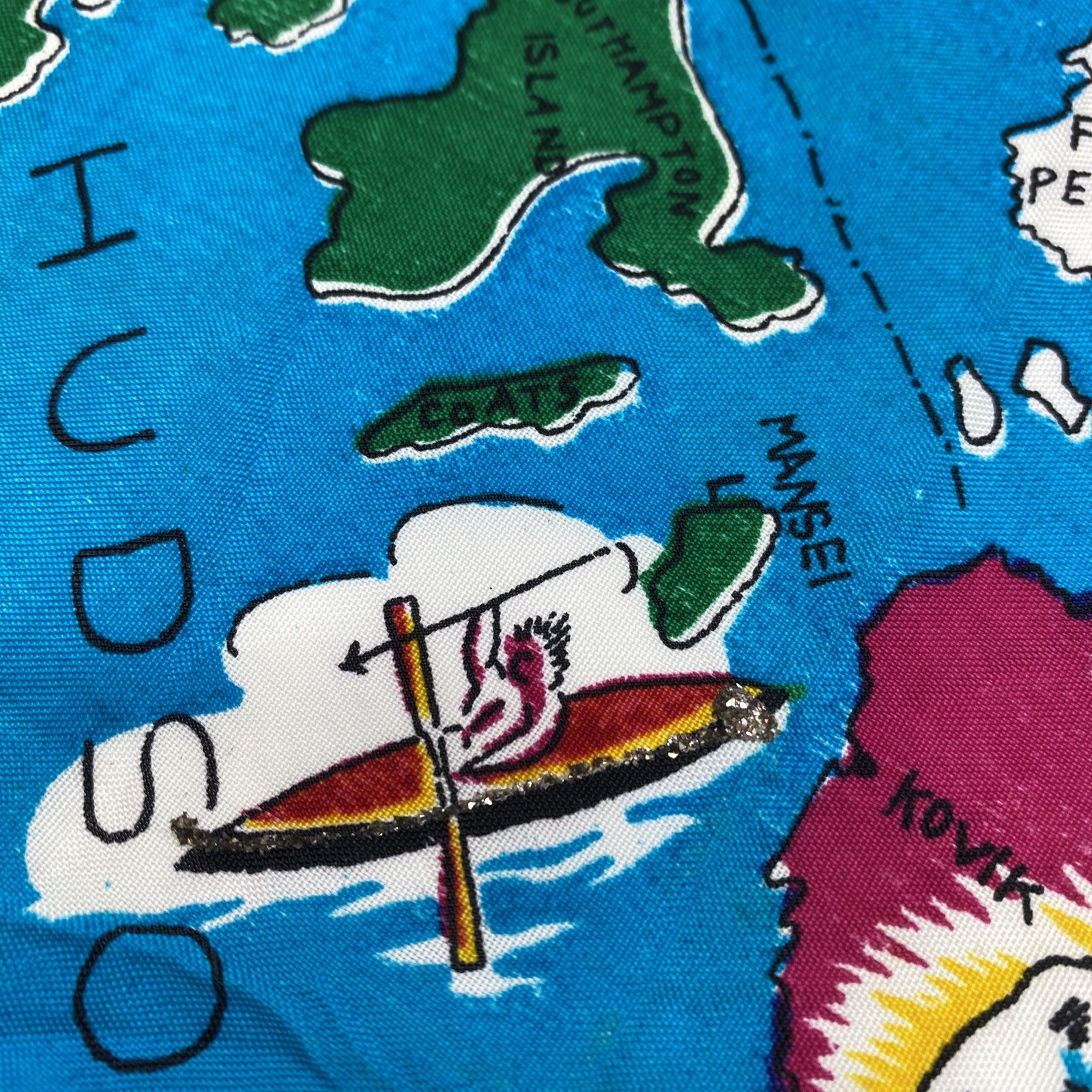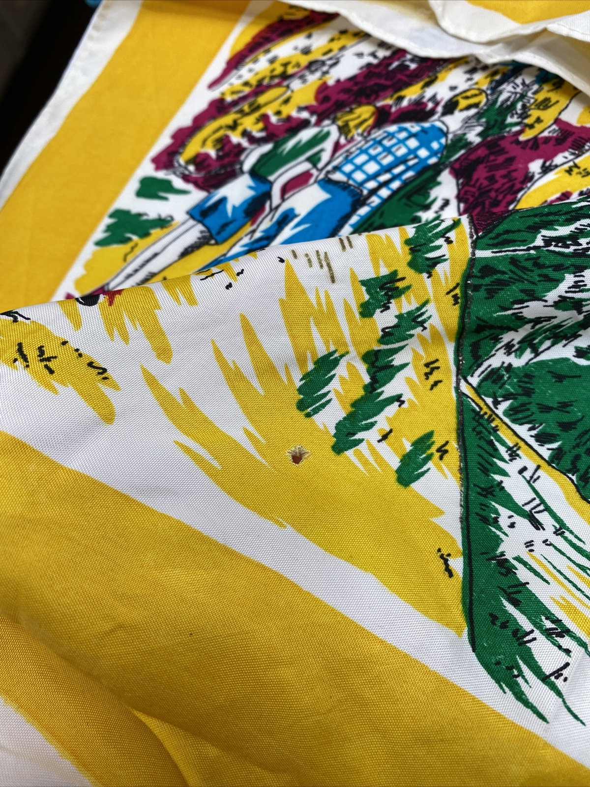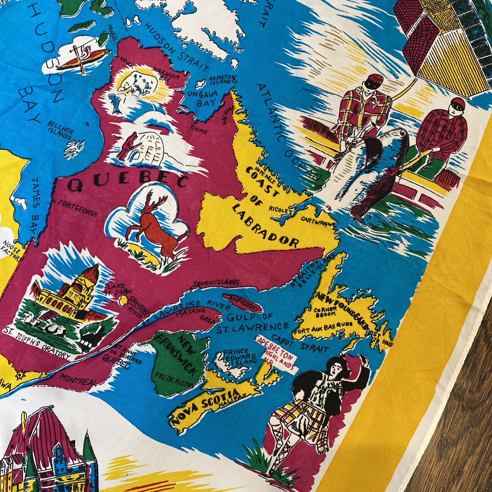 Vintage Colorful DOMINION OF CANADA Silk Blend Scarf w/ Canadian Landmarks 30x36