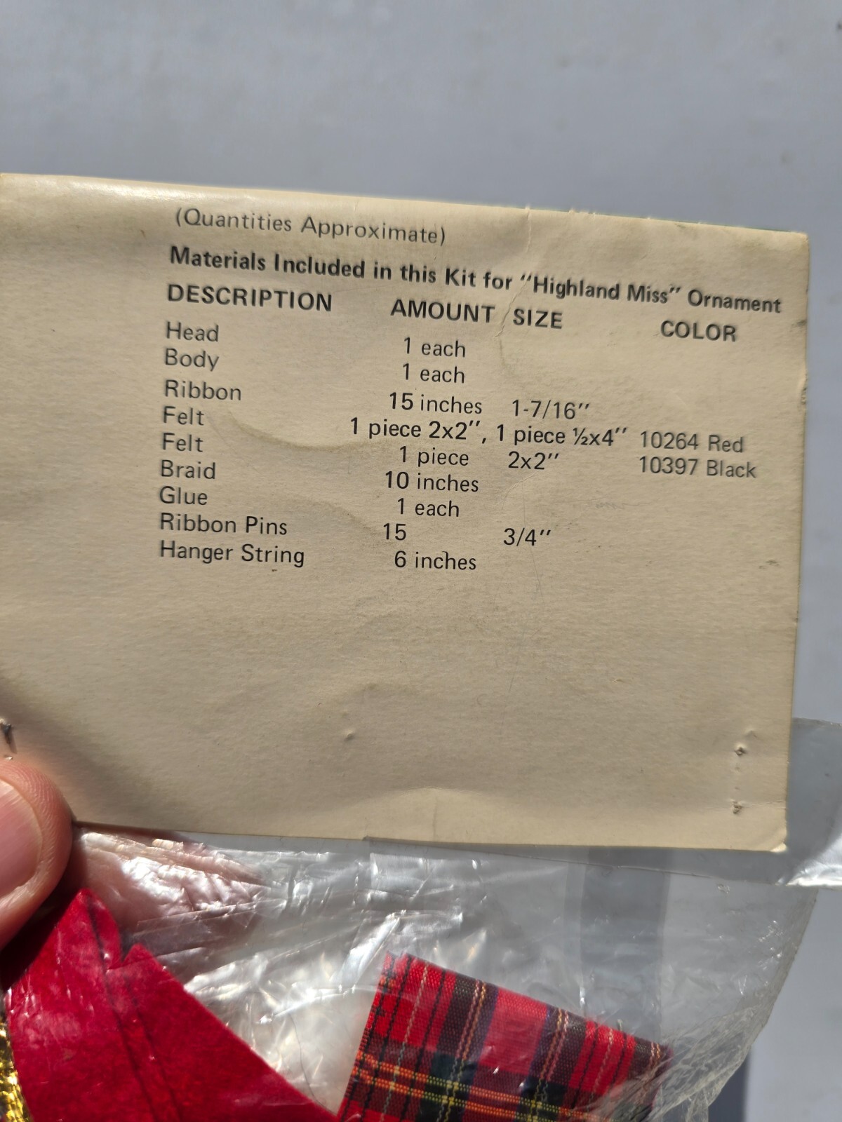 LeeWards HIGHLAND MISS Girl Doll Vintage Sequin Bead Christmas Ornament Kit NOS