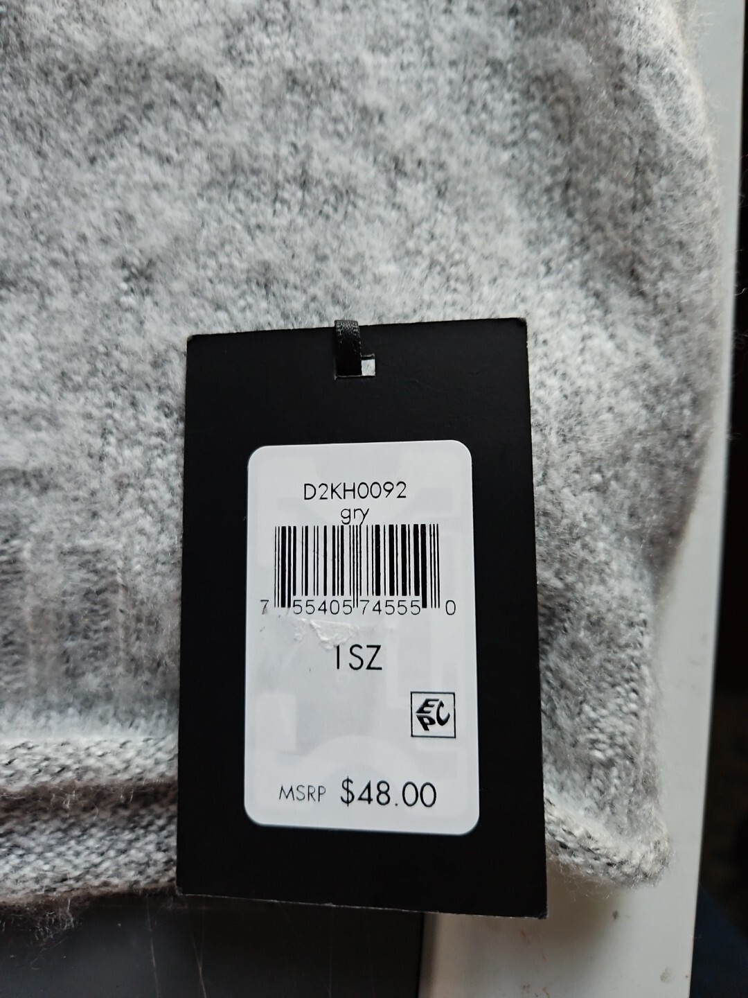 NWT DKNY WOMEN'S SLOUGH KNIT BEANIE HAT GRAY OS METAL TAB LOGO 48