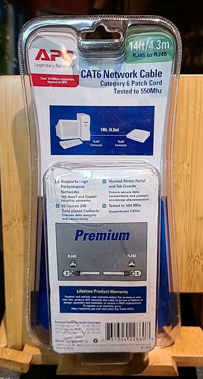 NEW, APC CAT6 Network Cable. 14ft. Tested To 15.6Mhz. NIB.