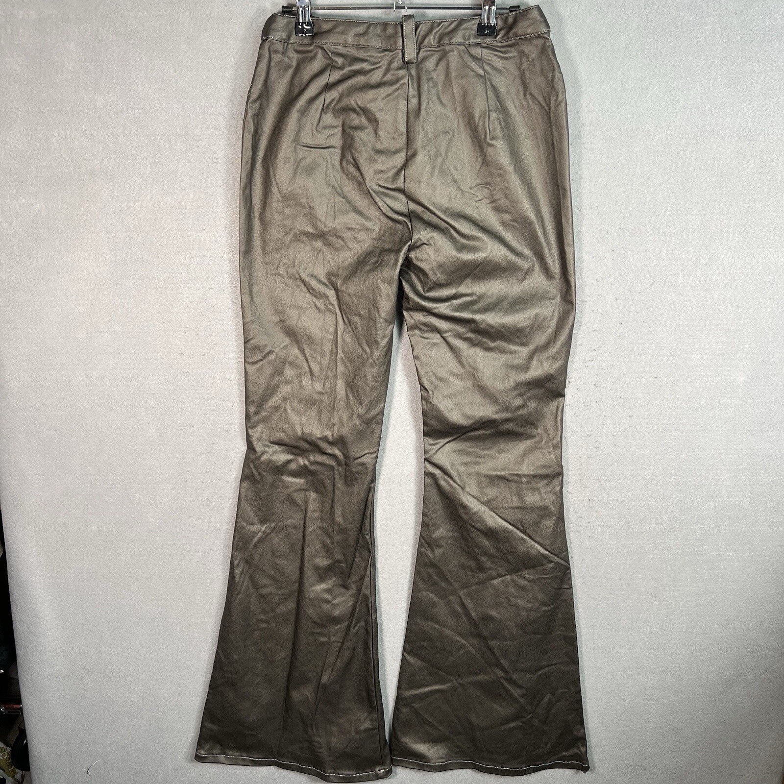 NWT Fashion Nova Faux Leather Flare Moto Pants Bronze Bottoms Size Medium