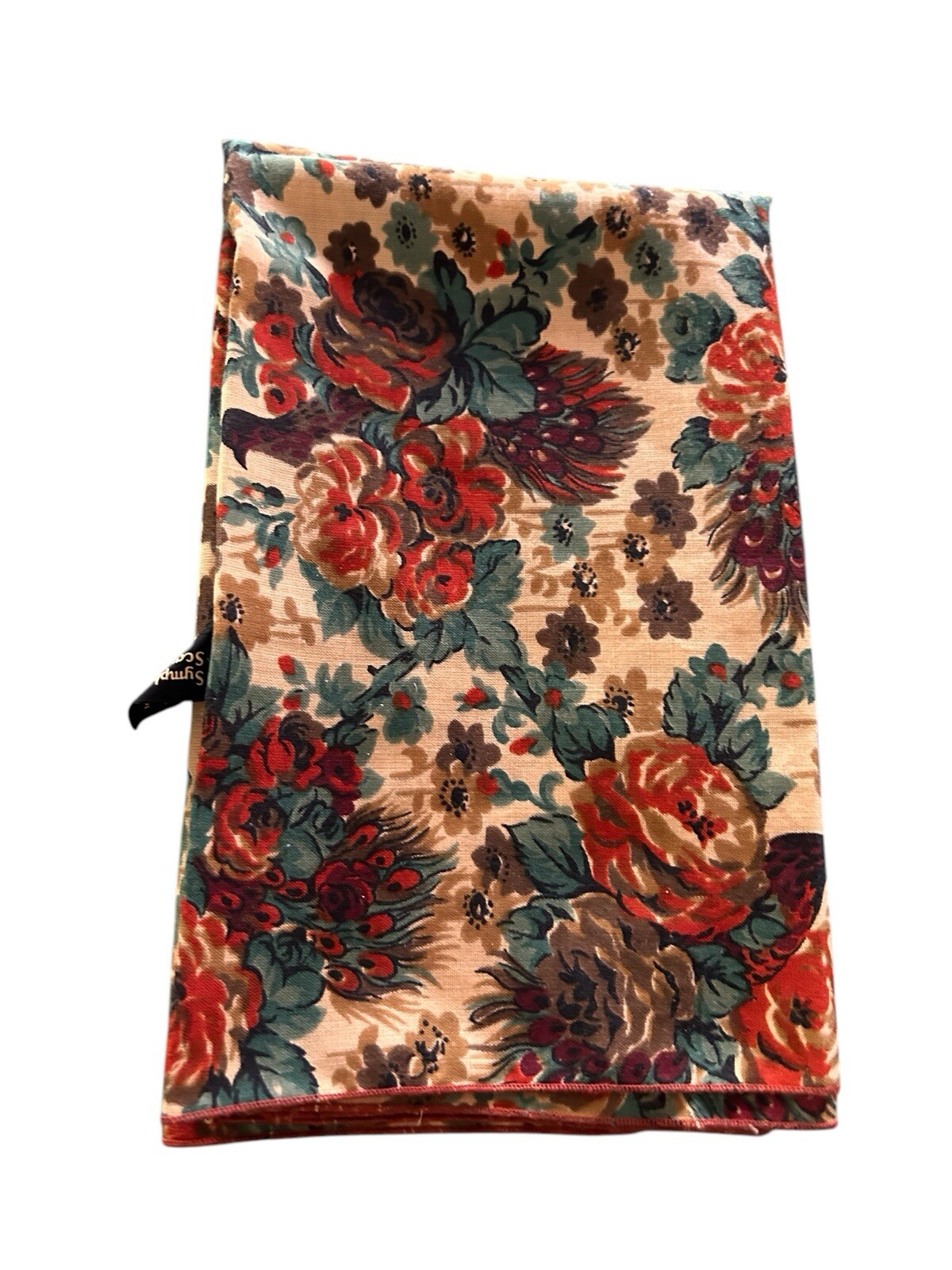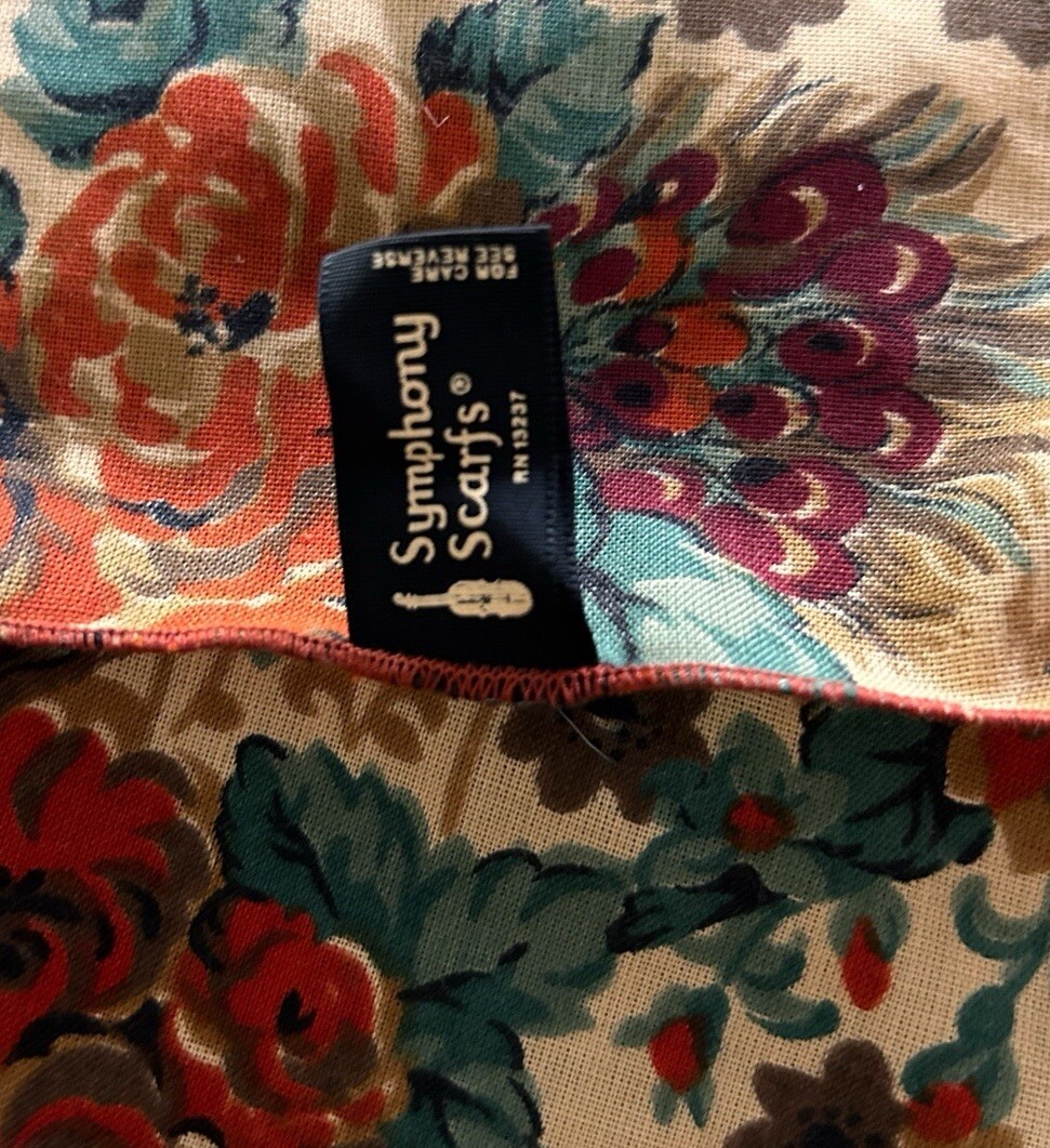 VINTAGE Symphony Scarf Square 20 1/2 Birds Foliage Print S5