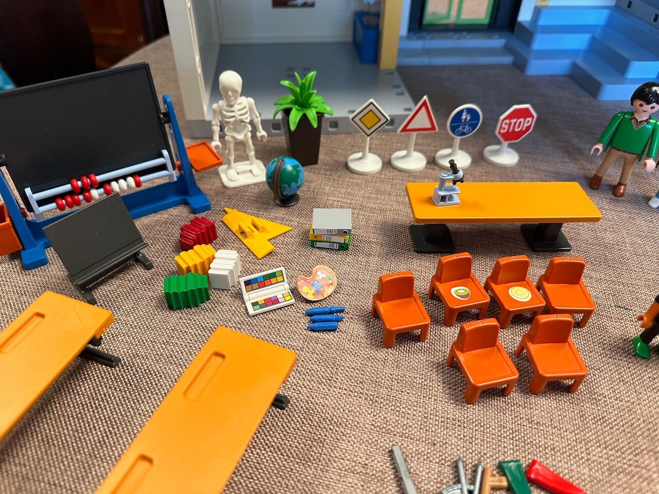 Playmobil 5923 primary school/5940 yellow bus sets, open play, no box/manual