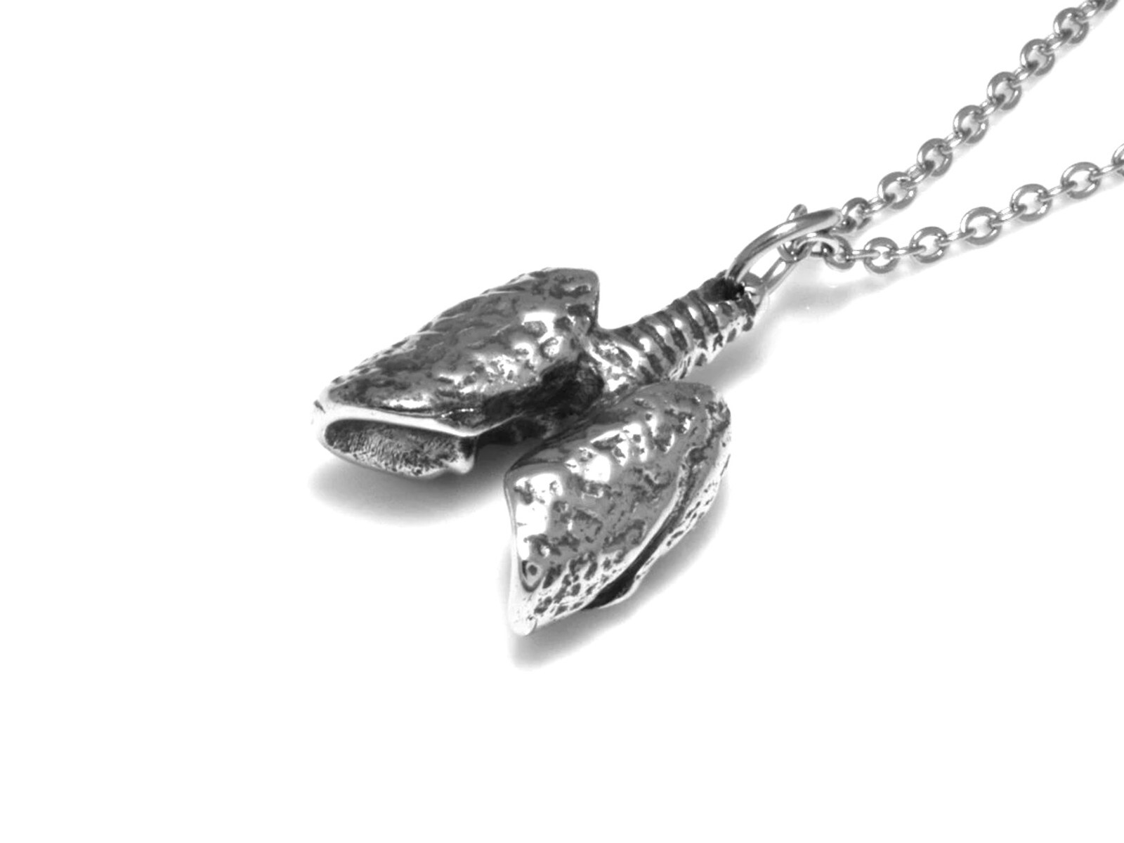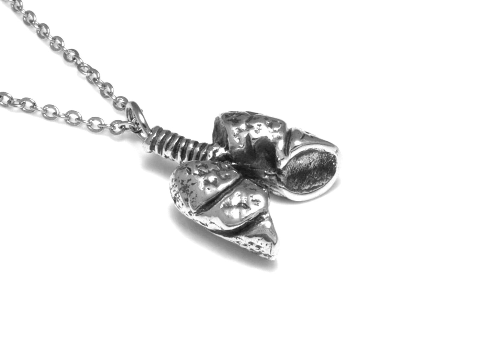 Lungs Necklace, Handmade Respiratory System Pendant Anatomical Jewelry in Pewter