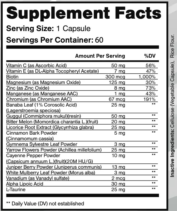 Active Ingredients: Biotin, Guggul, Bitter Melon