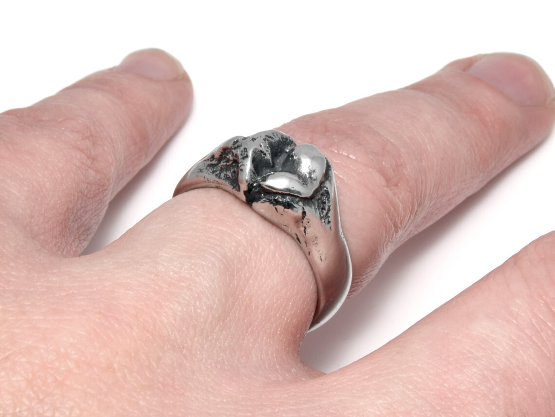 как выглядит Tibia and Femur Bone Ring, Handmade Skeleton Anatomy Jewelry in Pewter фото